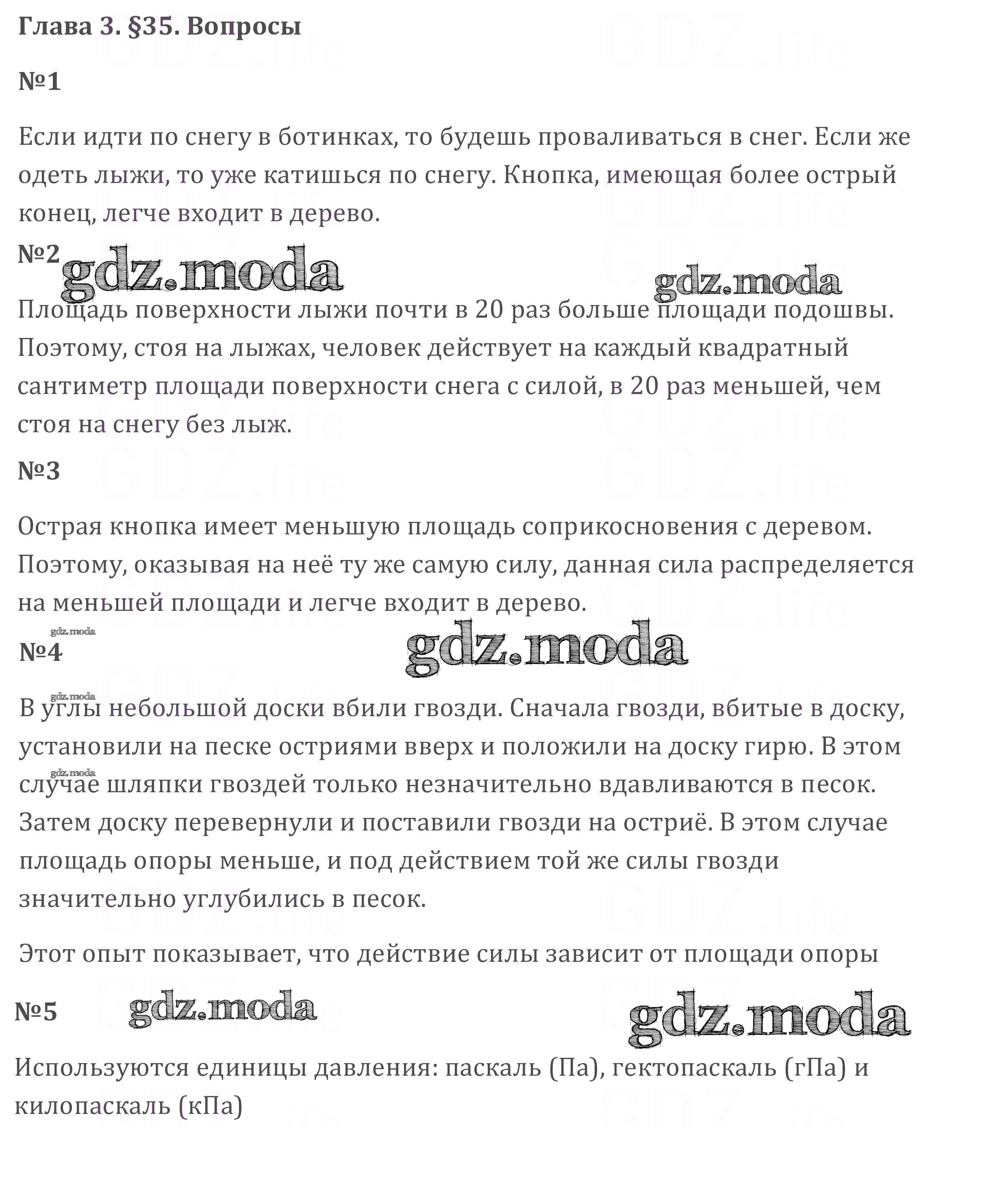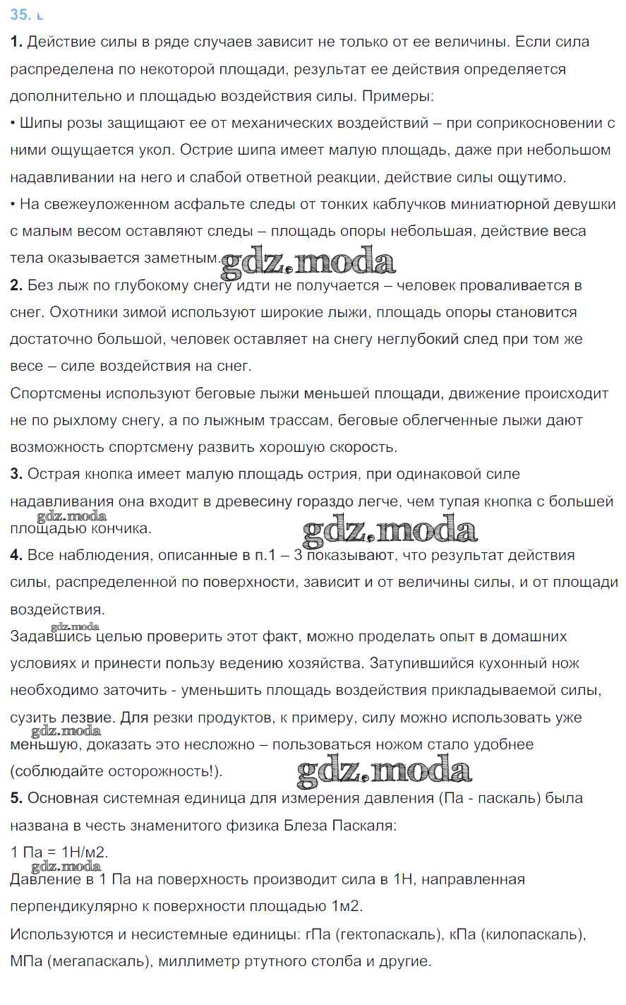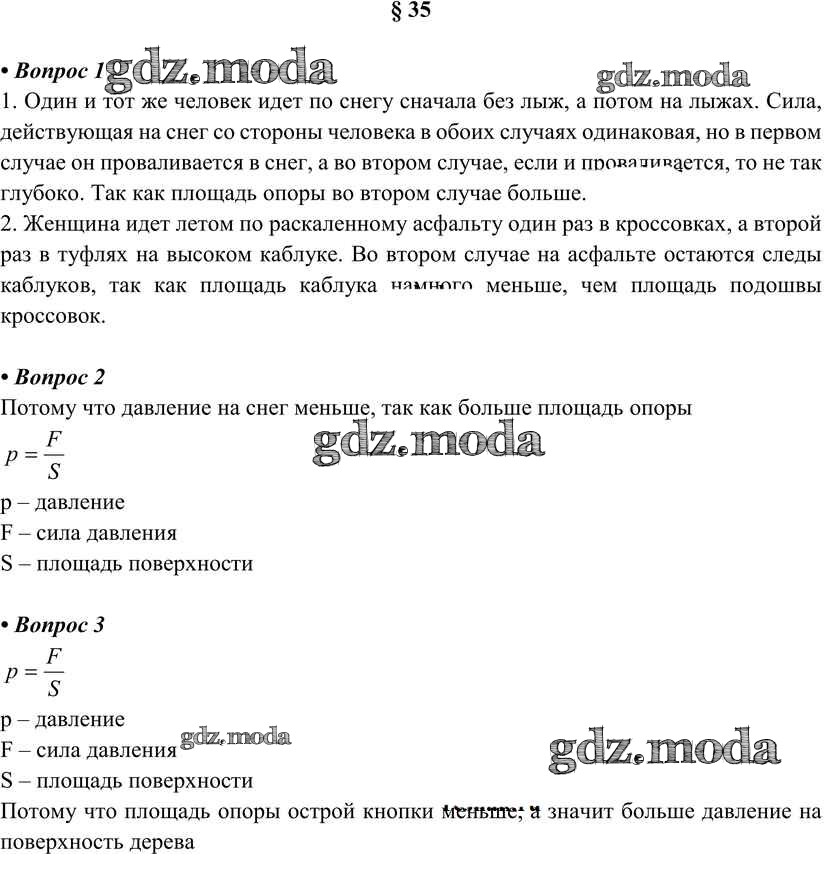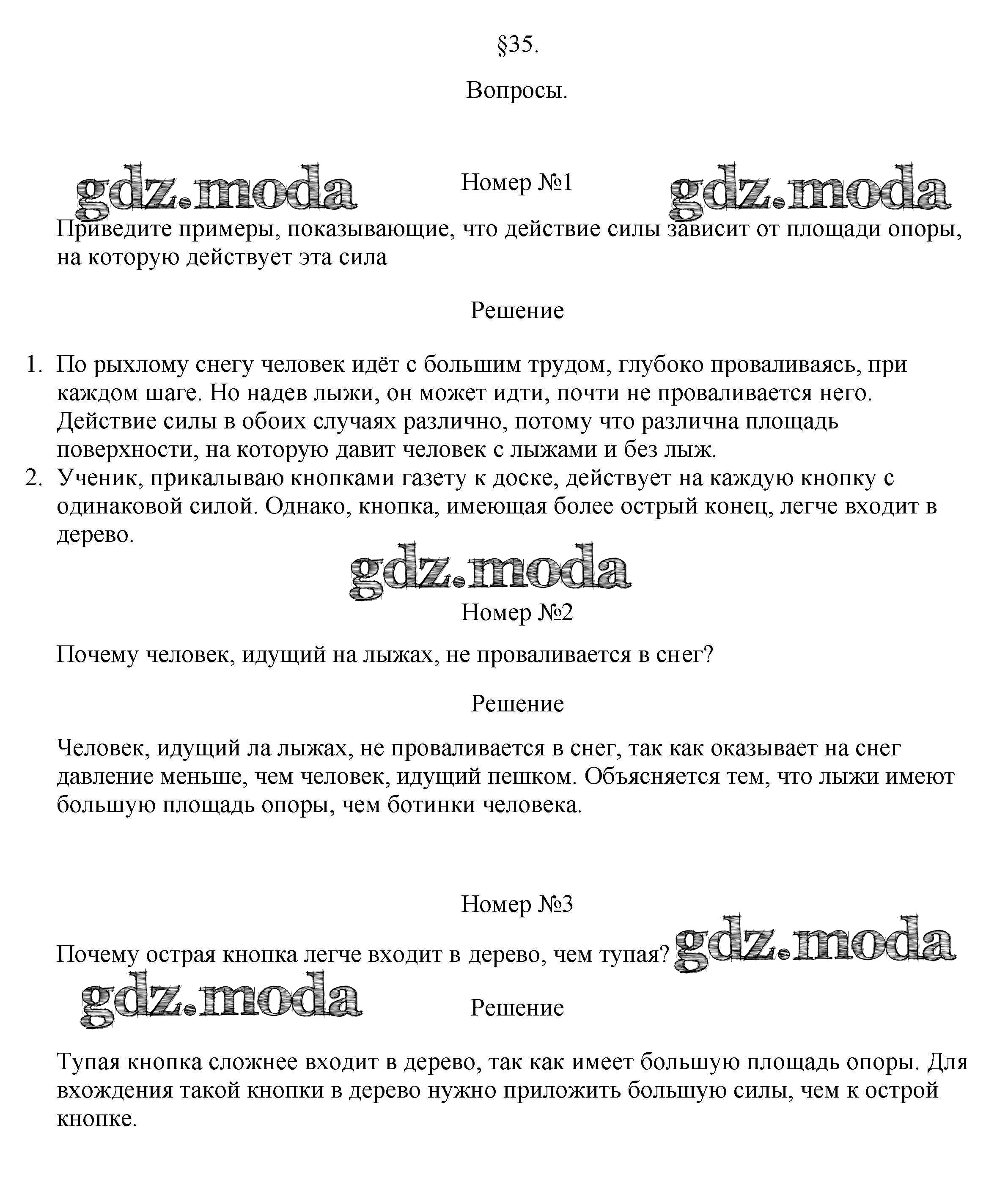 ОТВЕТ на задание № §35 Учебник по Физике 7 класс Перышкин Вертикаль