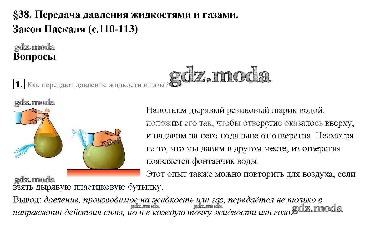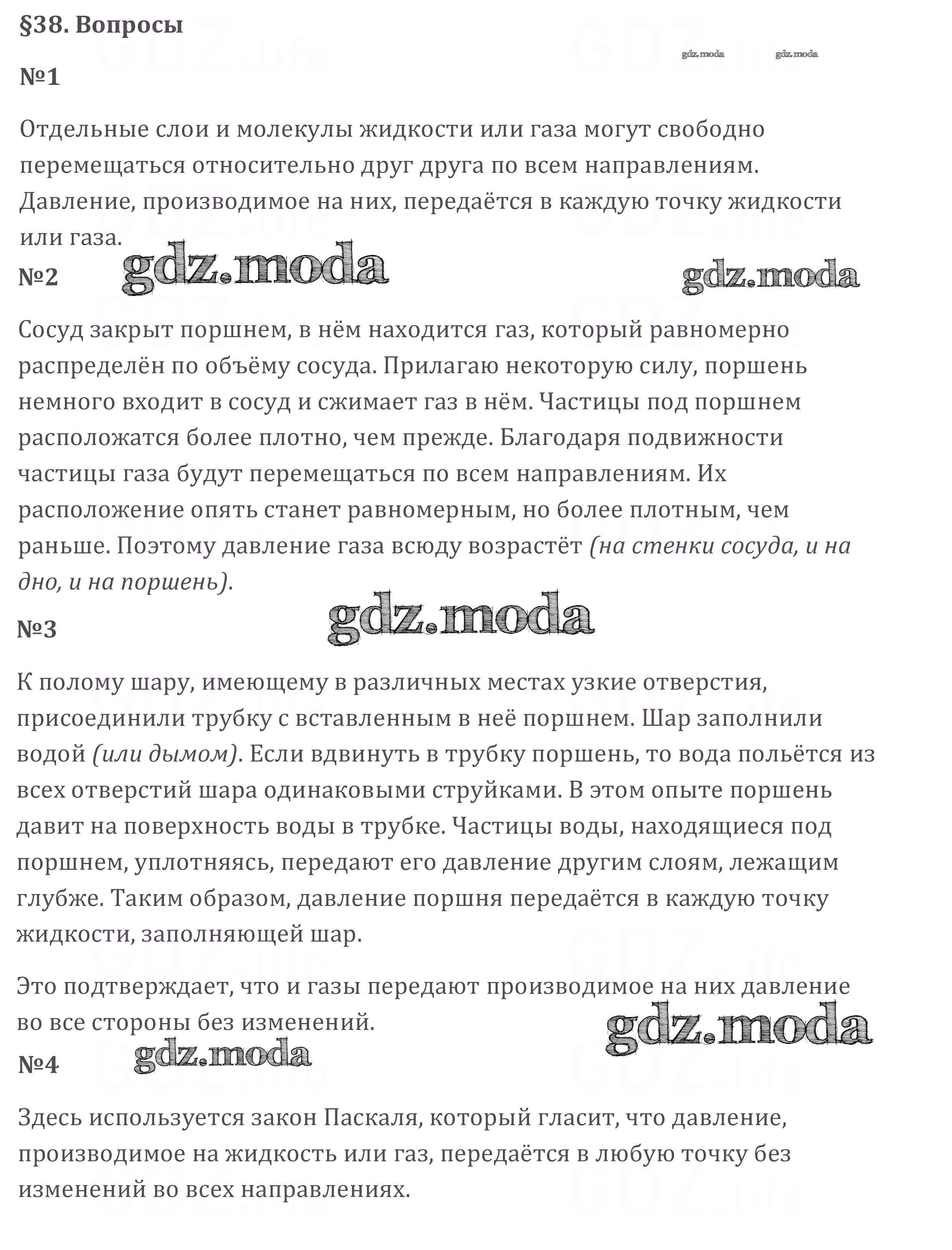 ОТВЕТ на задание № §38 Учебник по Физике 7 класс Перышкин Вертикаль