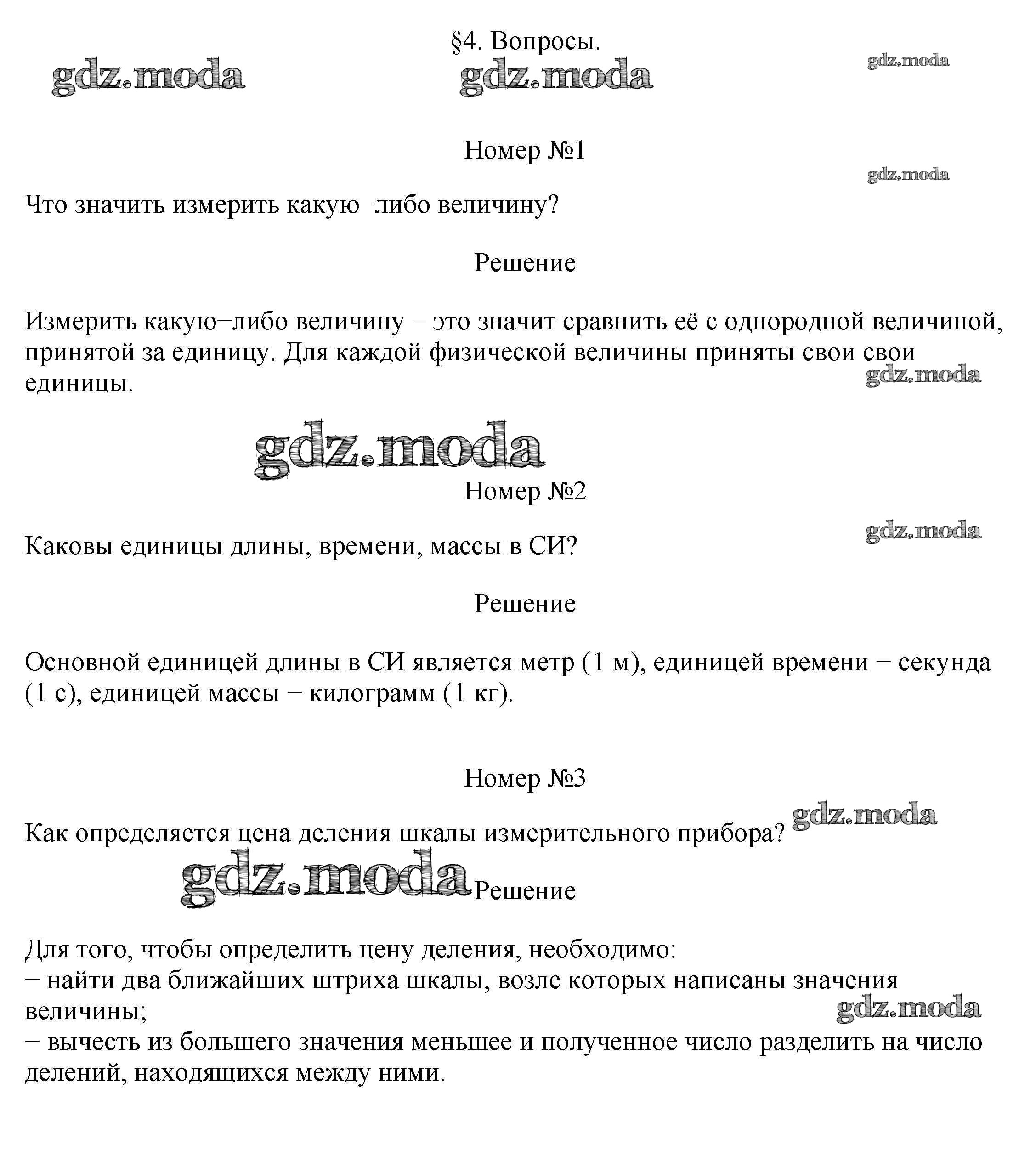 ОТВЕТ на задание № §4 Учебник по Физике 7 класс Перышкин Вертикаль