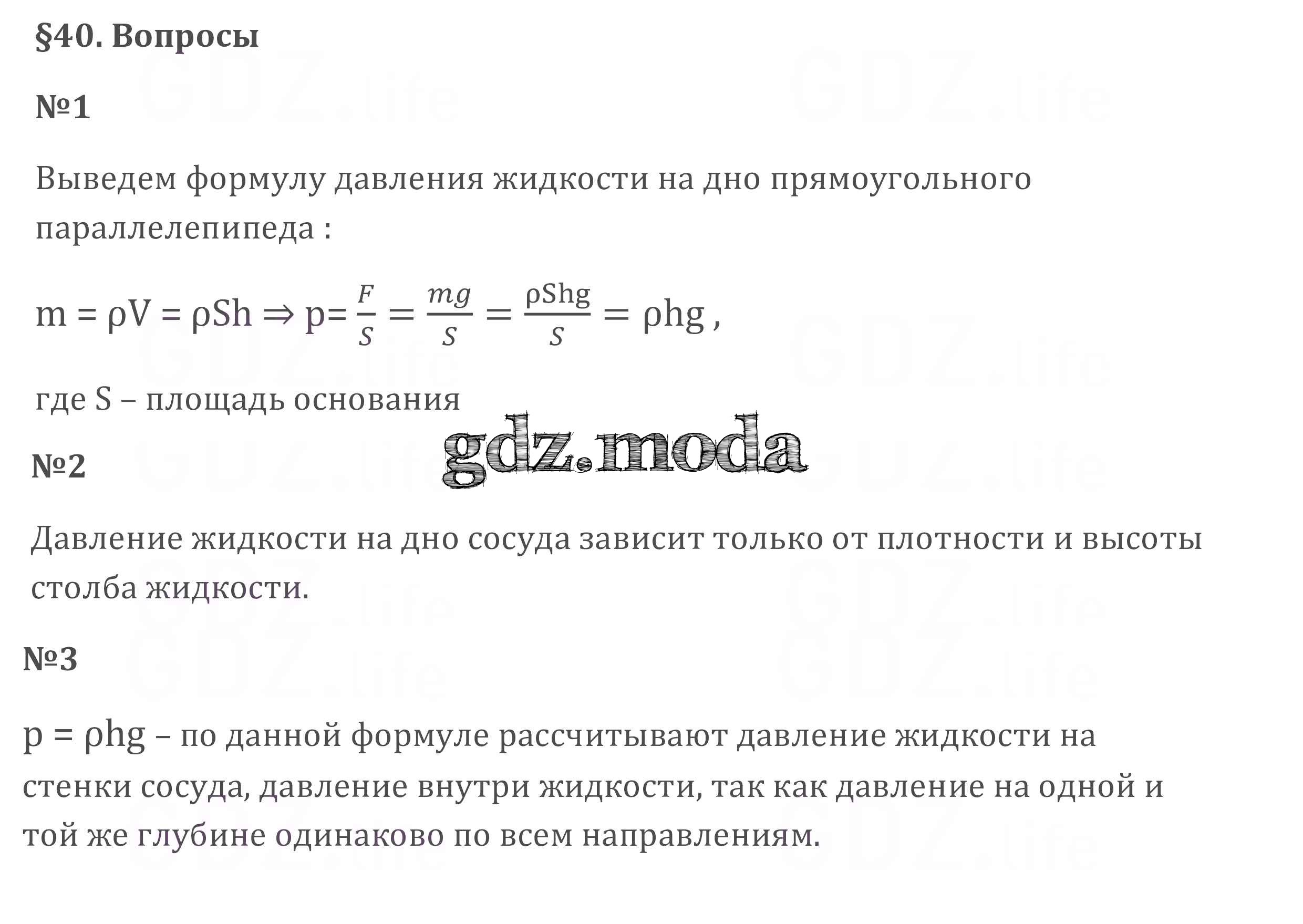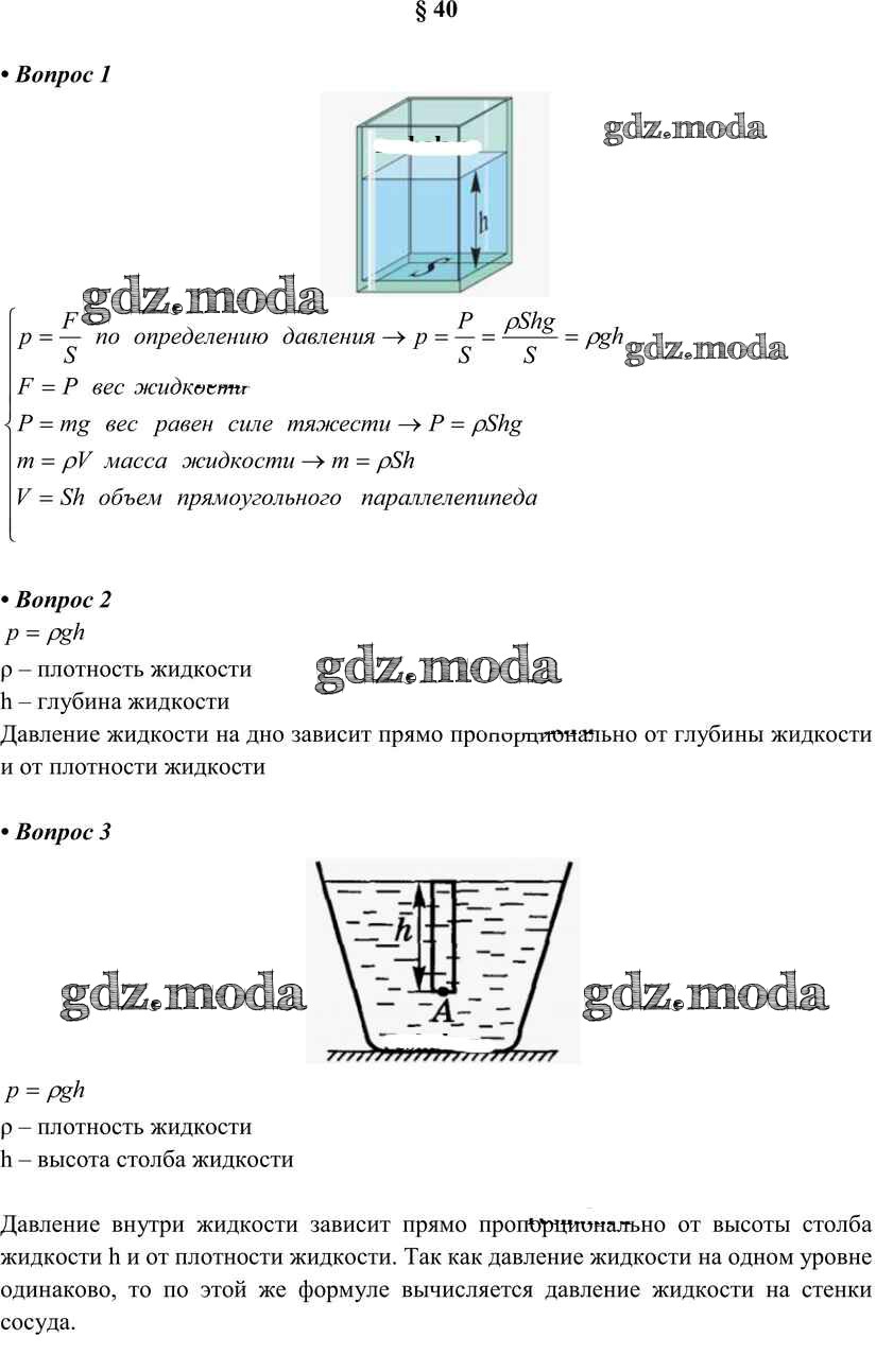 ОТВЕТ на задание № §40 Учебник по Физике 7 класс Перышкин Вертикаль
