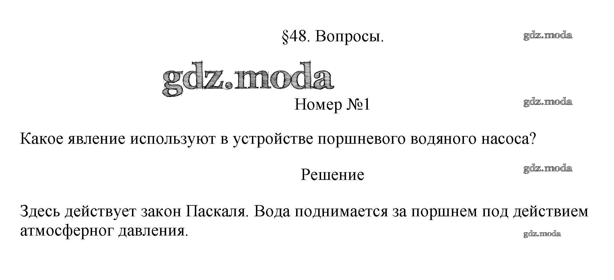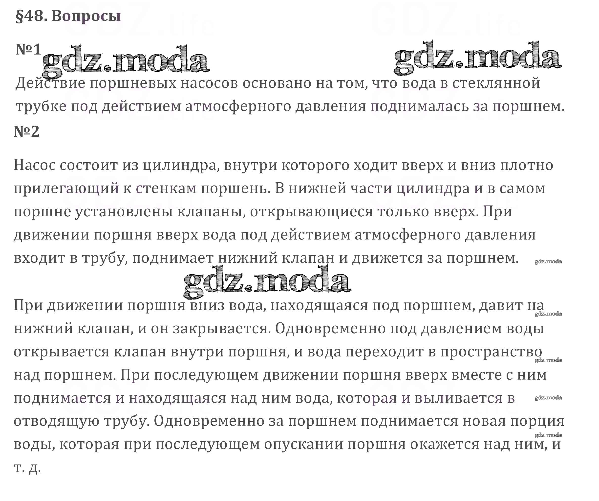 ОТВЕТ на задание № §48 Учебник по Физике 7 класс Перышкин Вертикаль