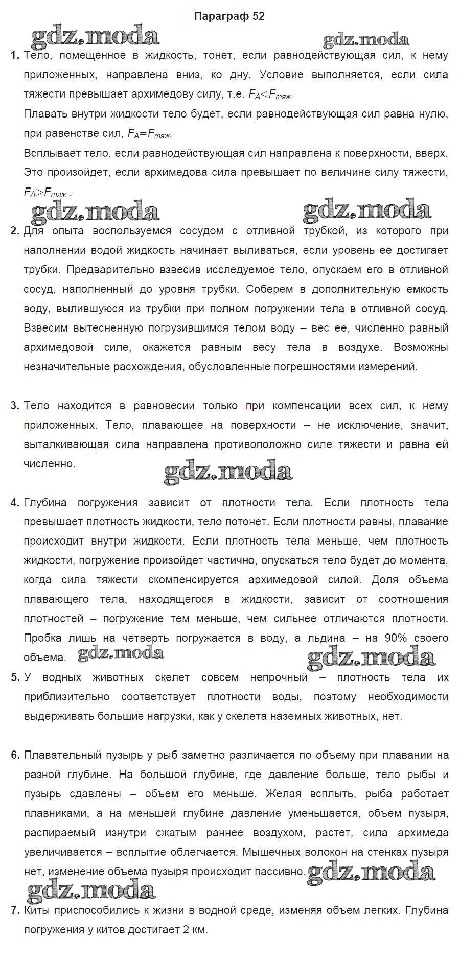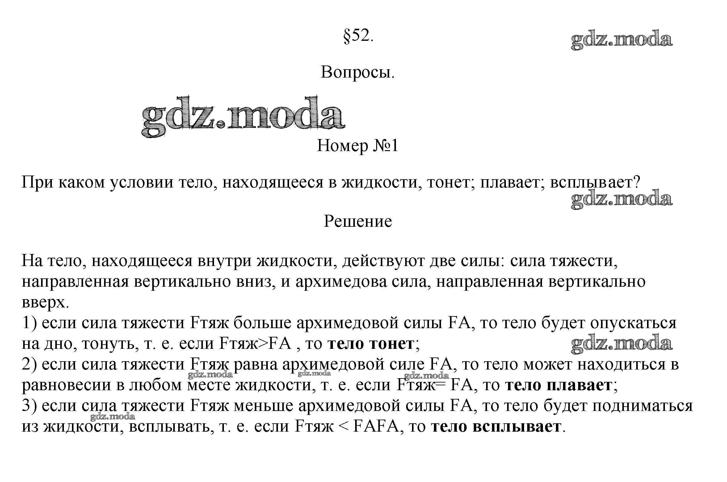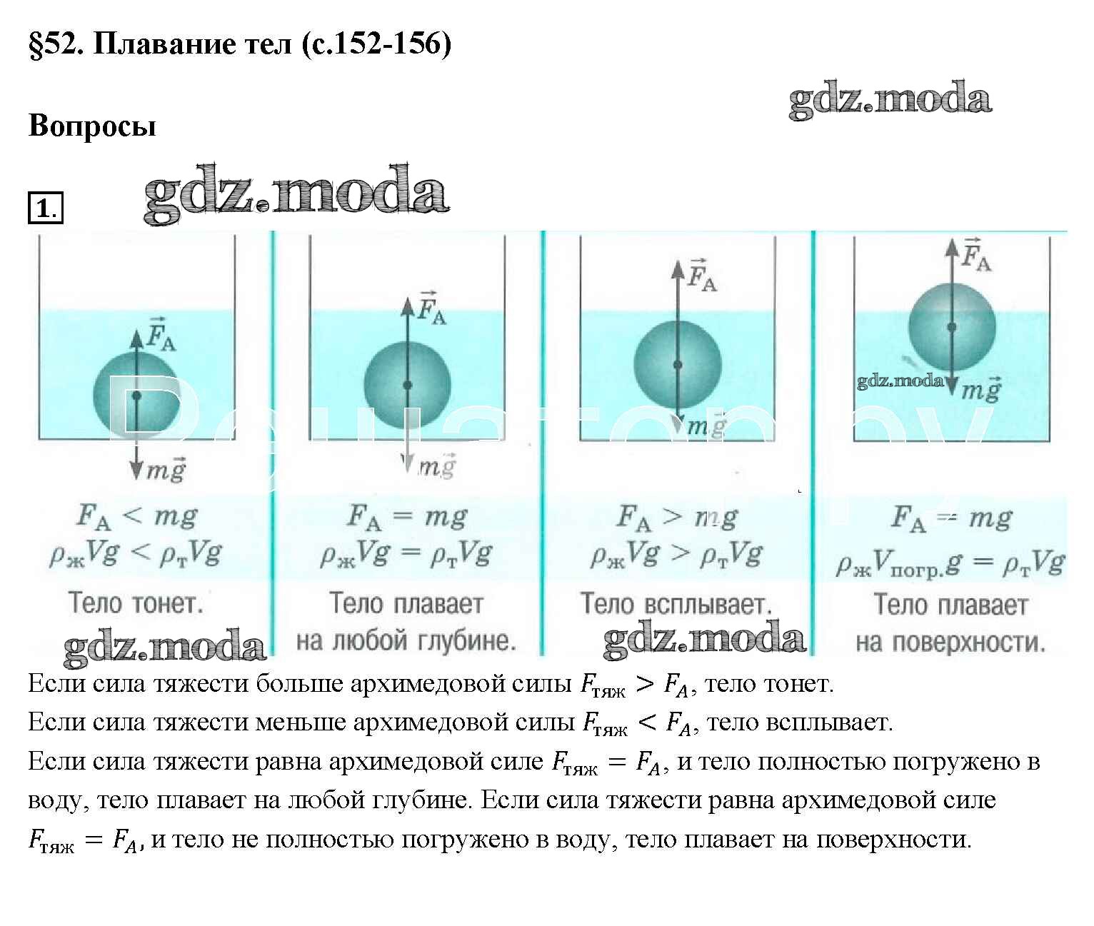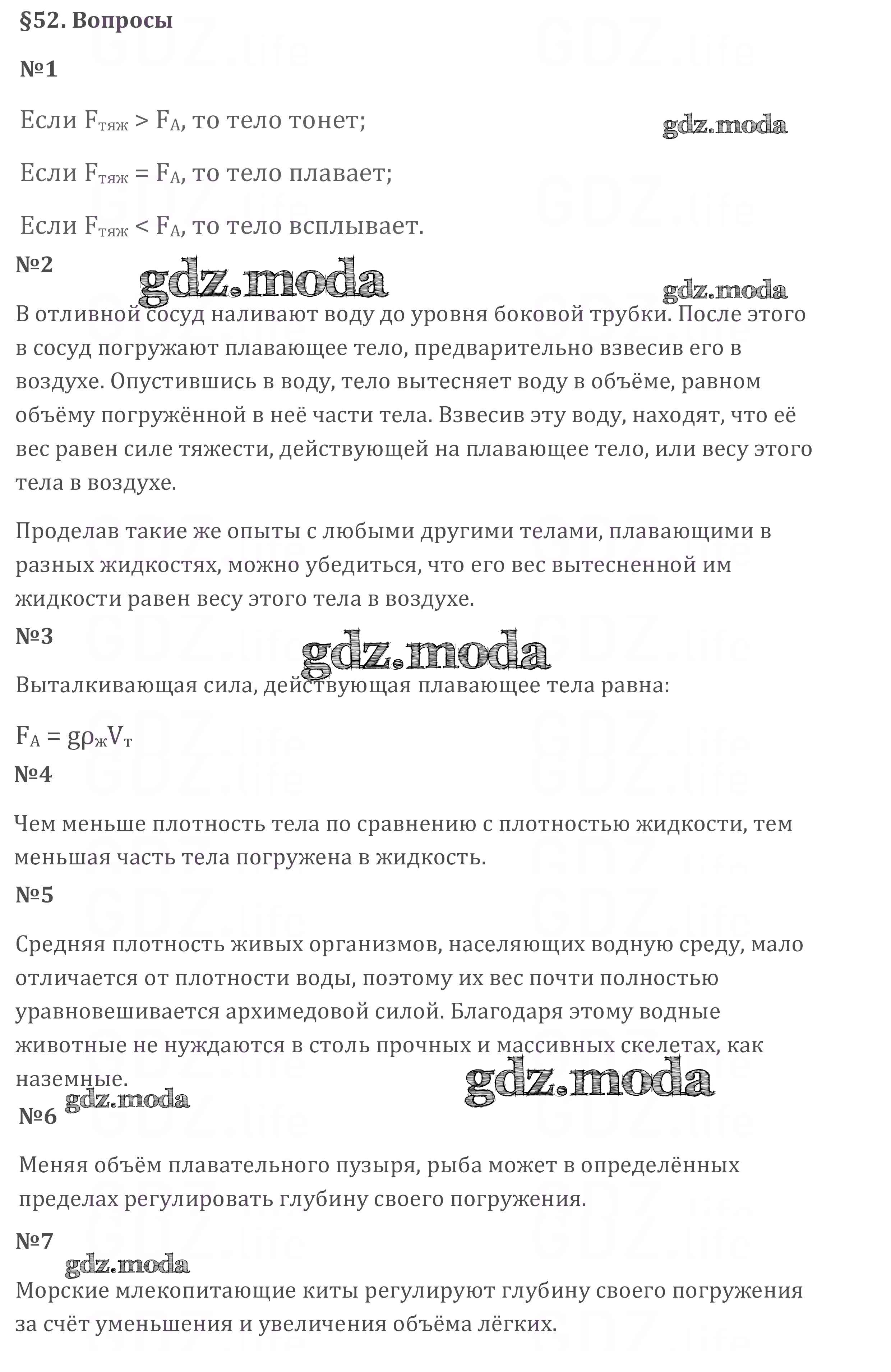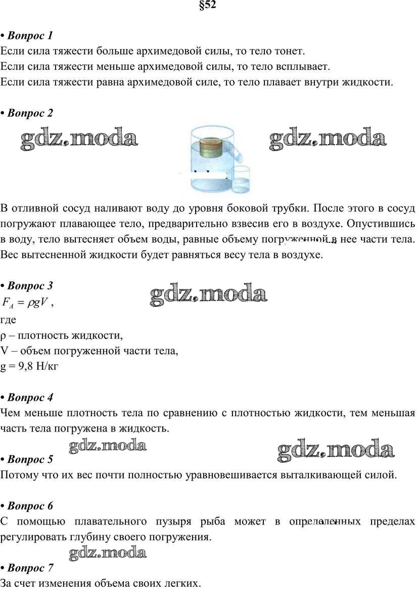 ОТВЕТ на задание № §52 Учебник по Физике 7 класс Перышкин Вертикаль