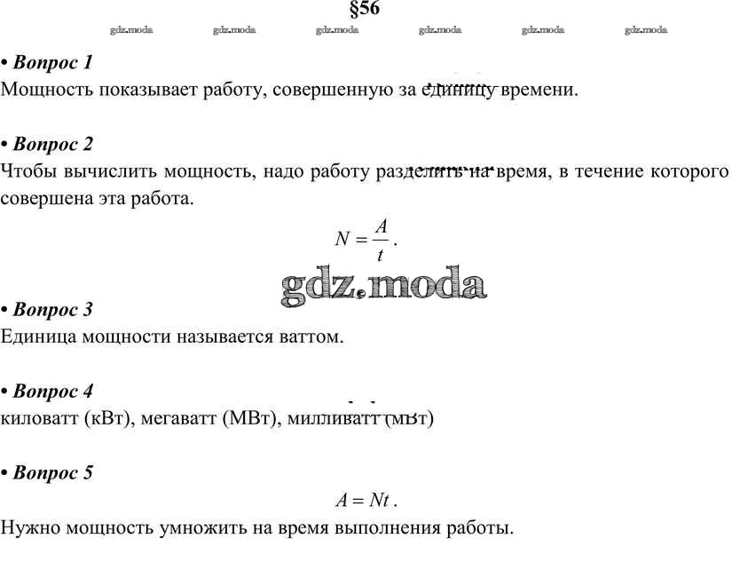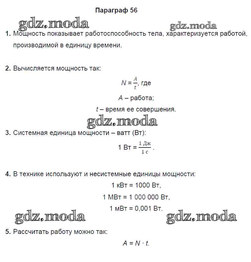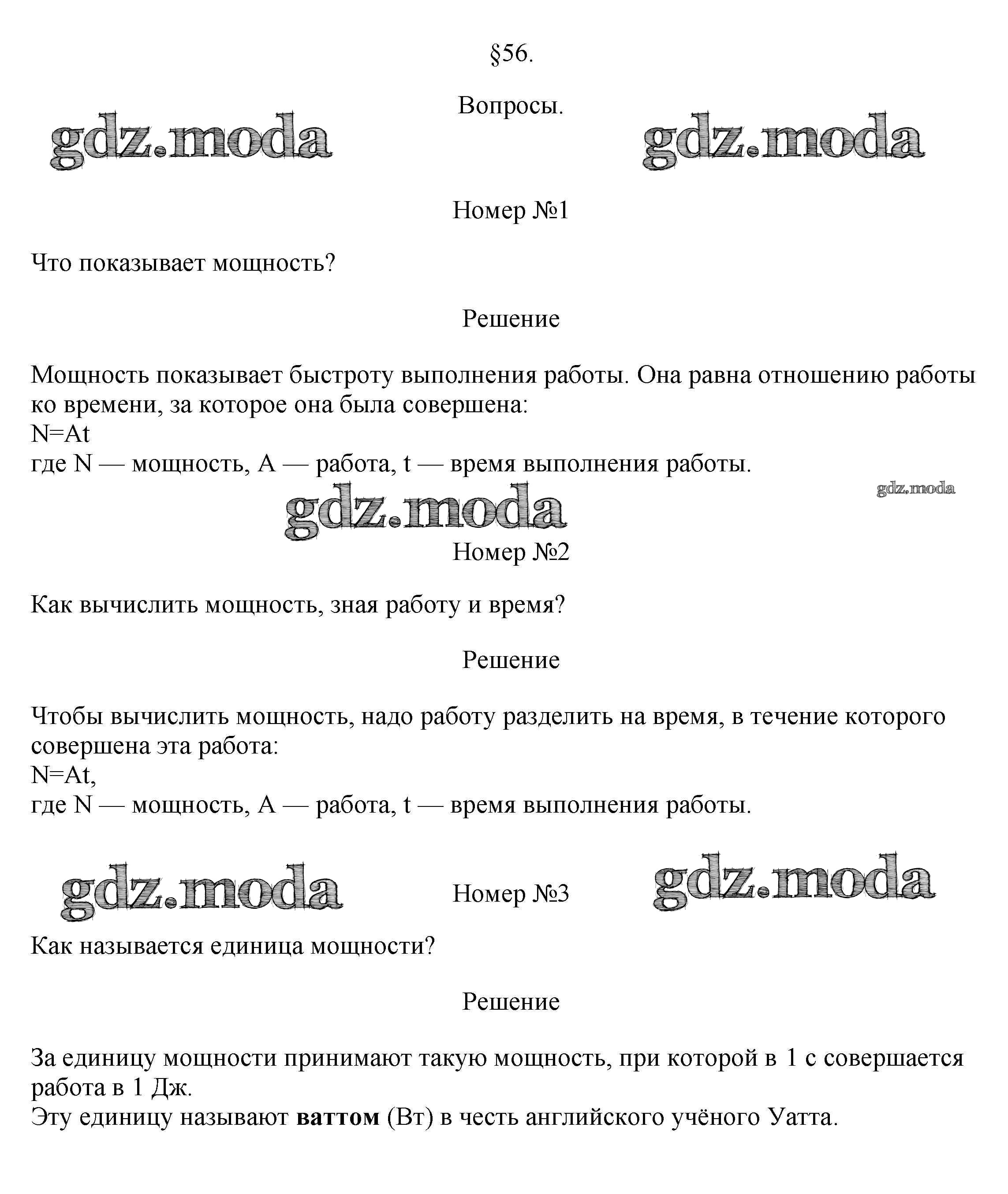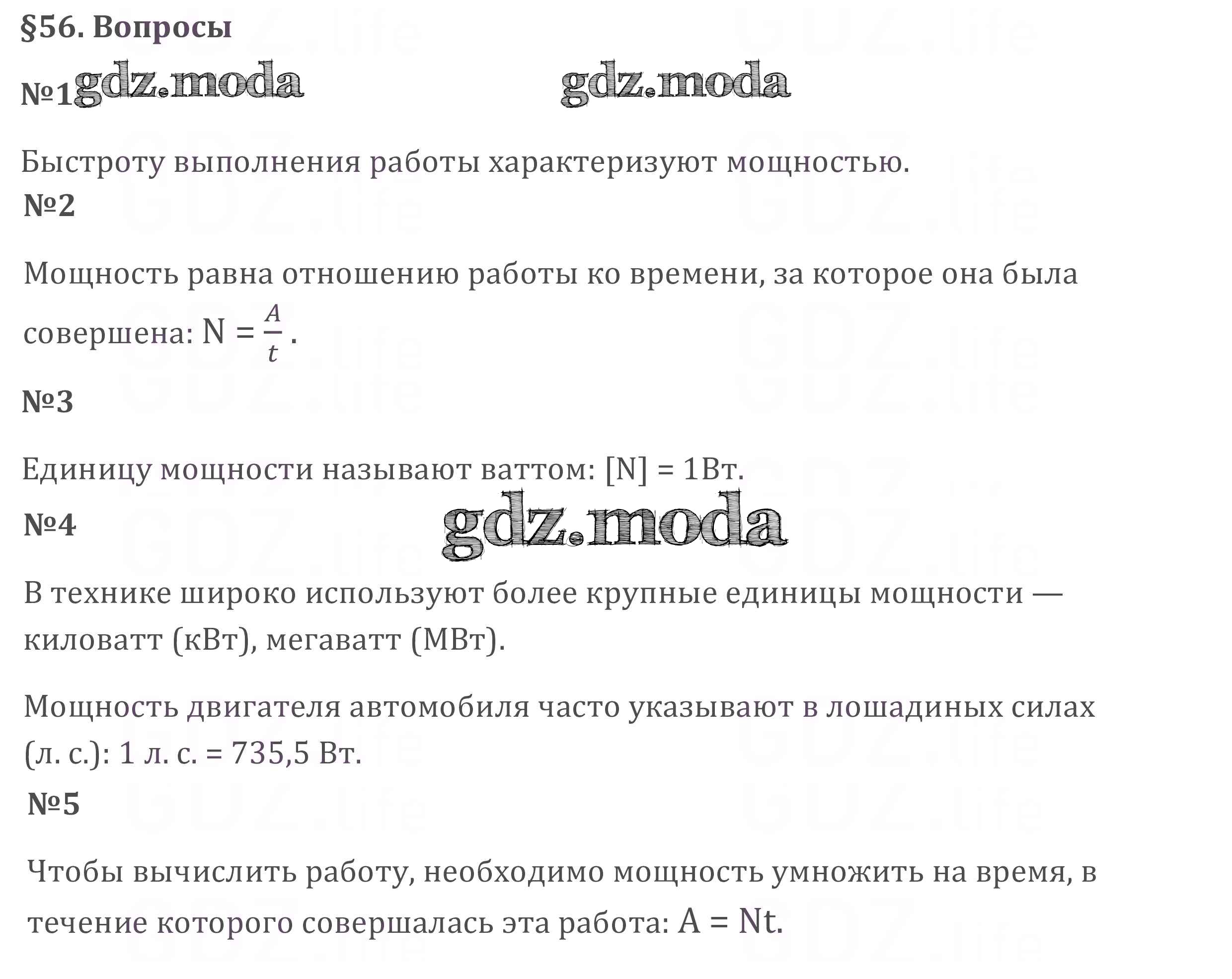 ОТВЕТ на задание № §56 Учебник по Физике 7 класс Перышкин Вертикаль
