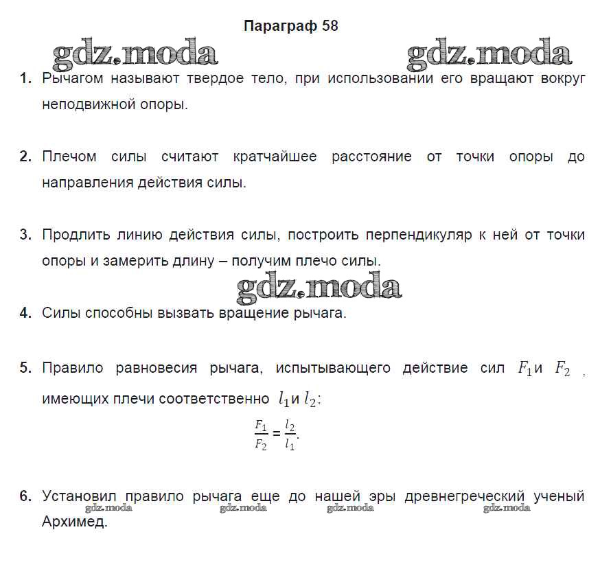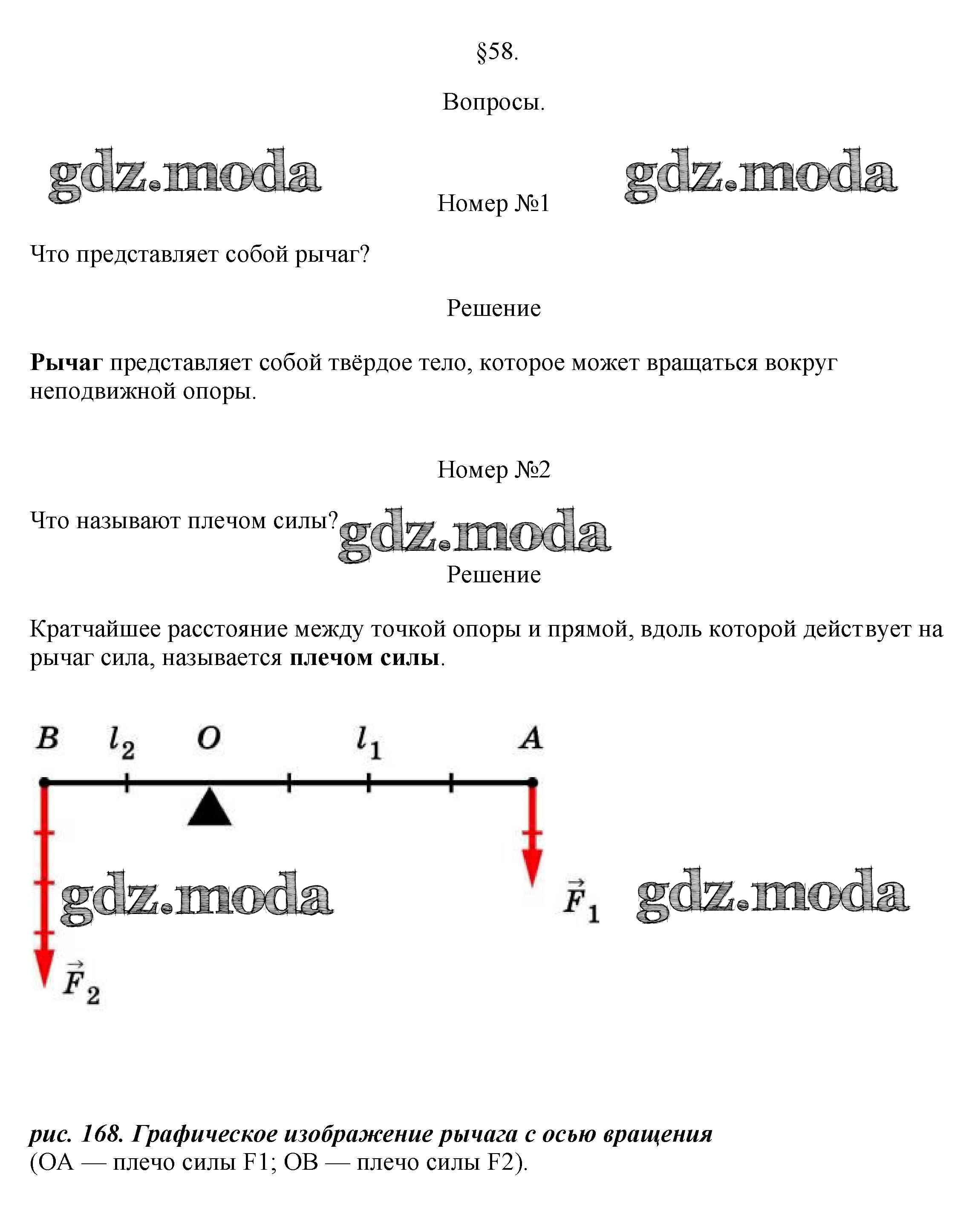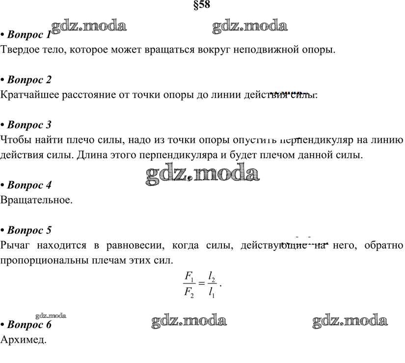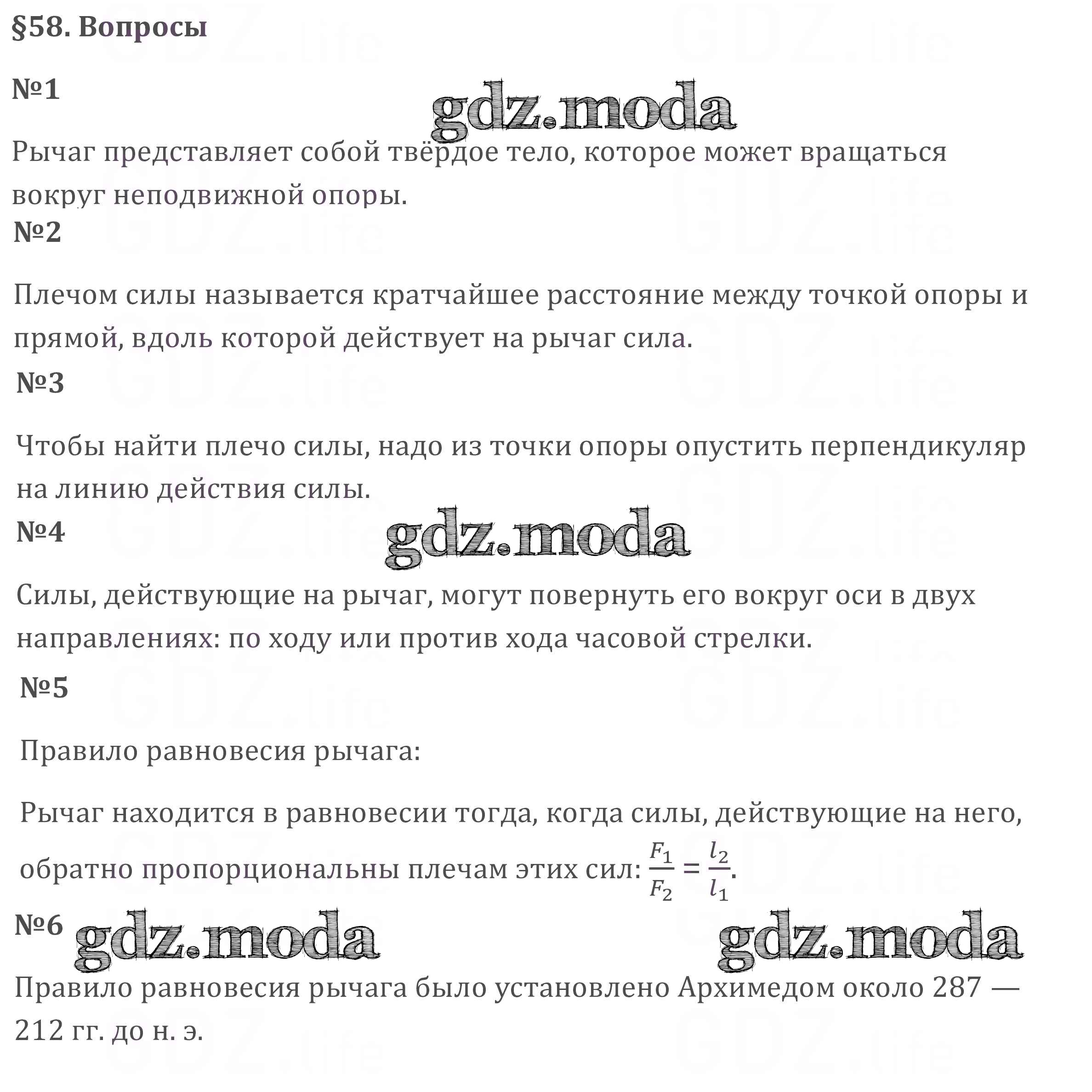 ОТВЕТ на задание № §58 Учебник по Физике 7 класс Перышкин Вертикаль