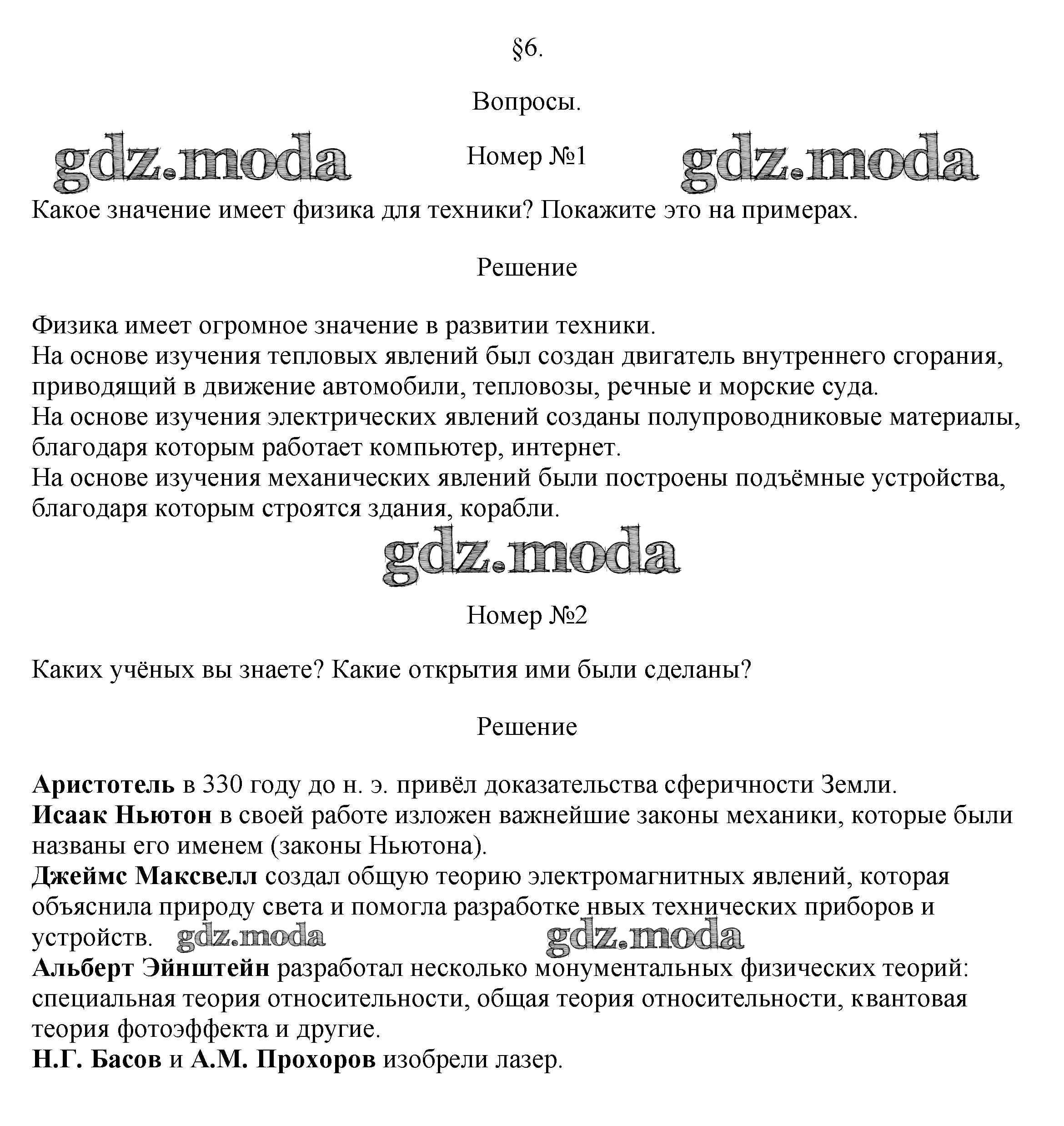 ОТВЕТ на задание № §6 Учебник по Физике 7 класс Перышкин Вертикаль