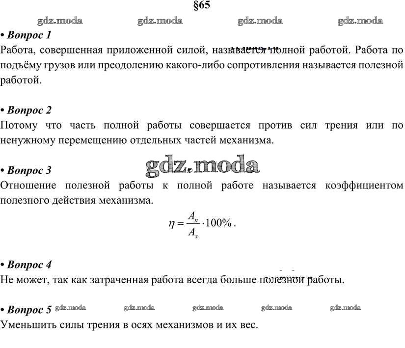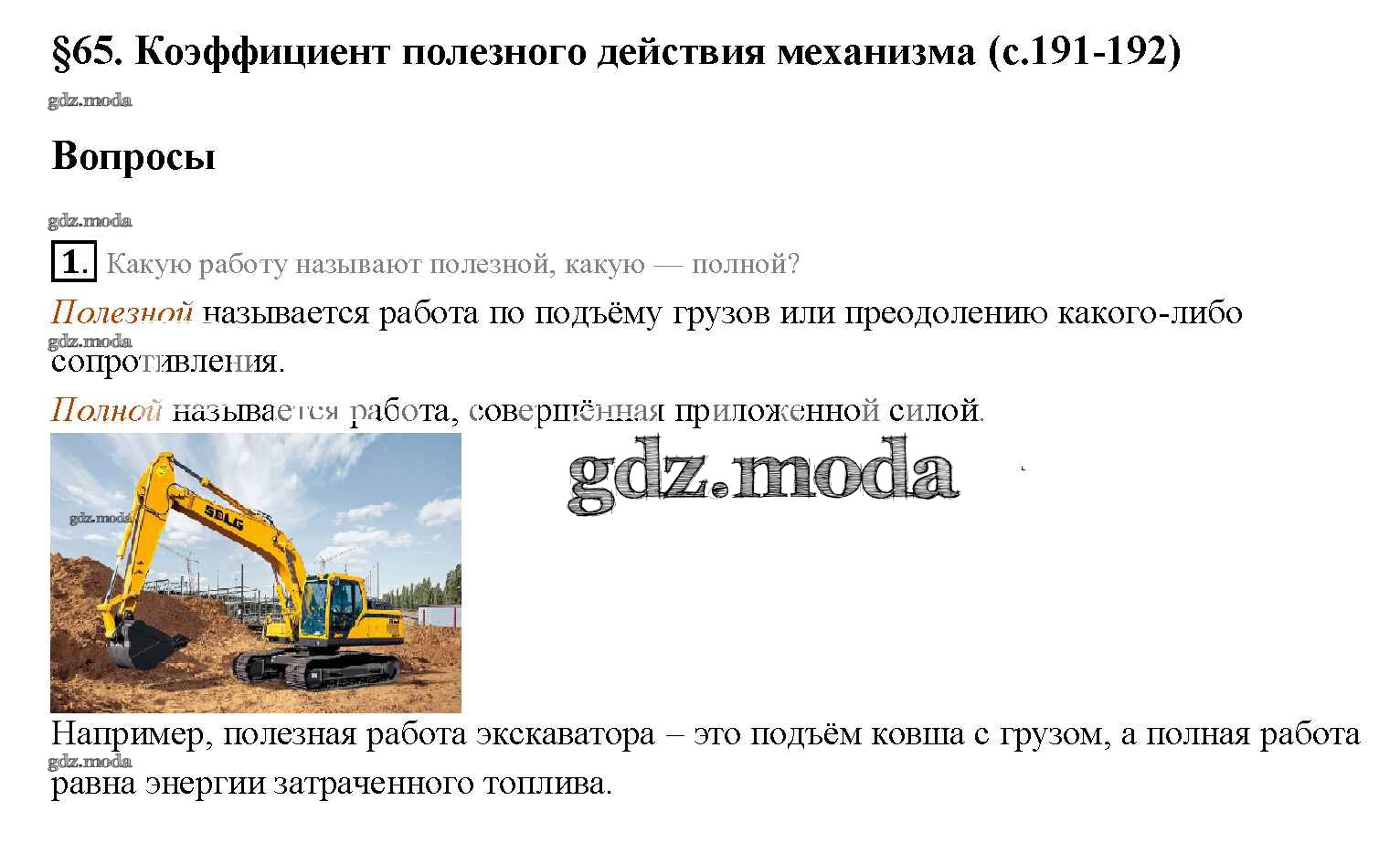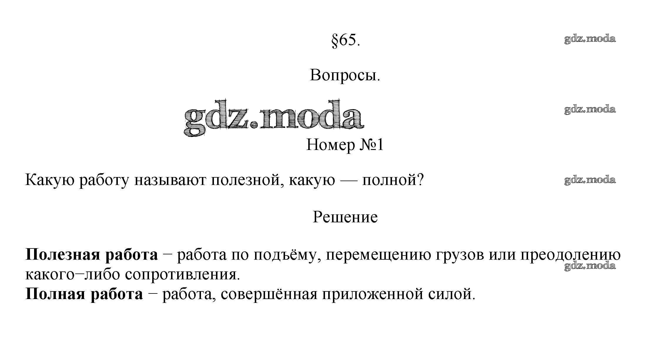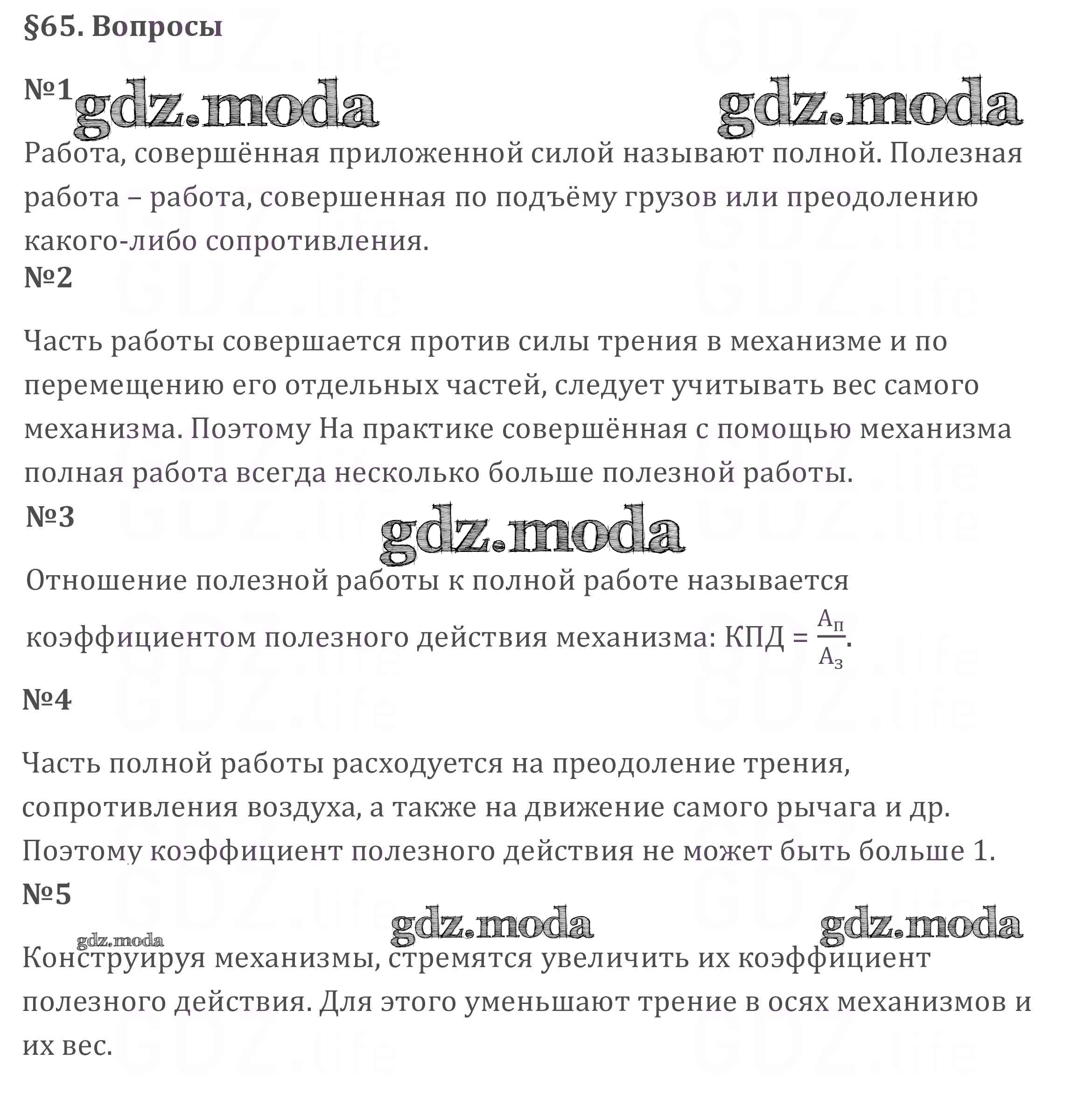 ОТВЕТ на задание № §65 Учебник по Физике 7 класс Перышкин Вертикаль