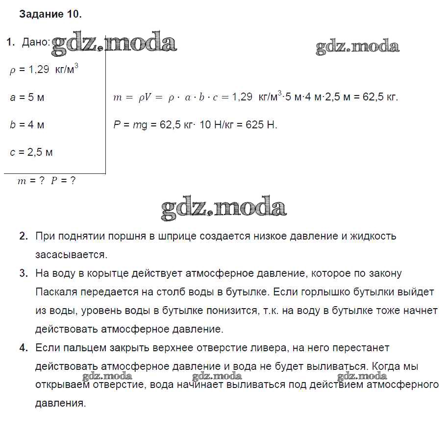ОТВЕТ на задание № 10 Учебник по Физике 7 класс Перышкин Вертикаль
