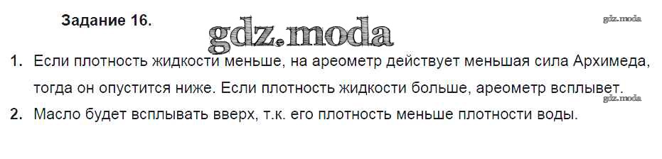 ОТВЕТ на задание № 16 Учебник по Физике 7 класс Перышкин Вертикаль