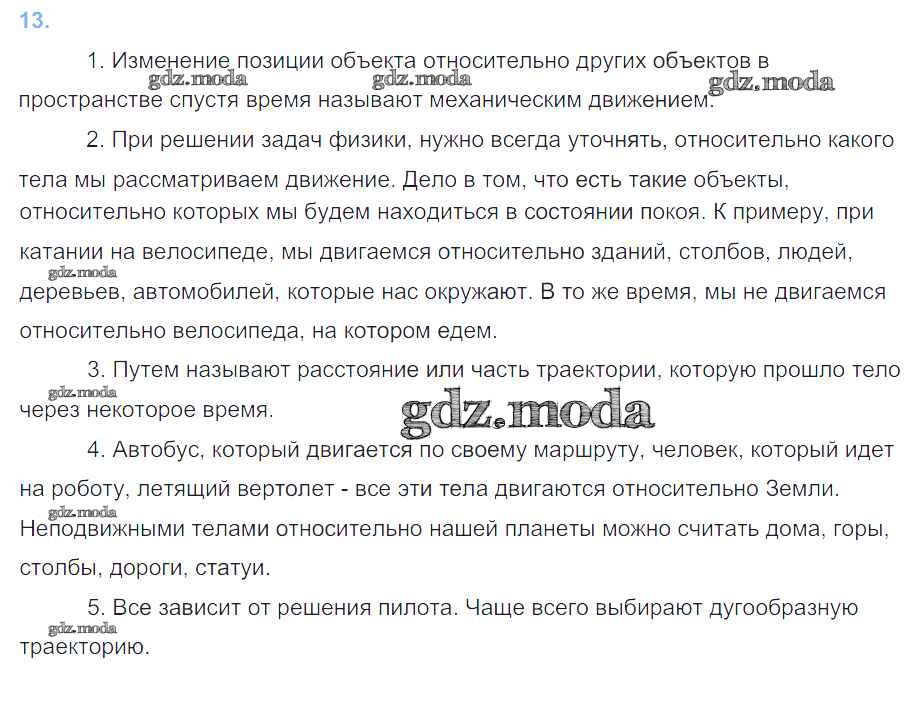 ГДЗ решение к заданию № §13 Физика 7 класс Перышкин А.В. Дрофа 2016 ФГОС бесплатно на гдз.мода!