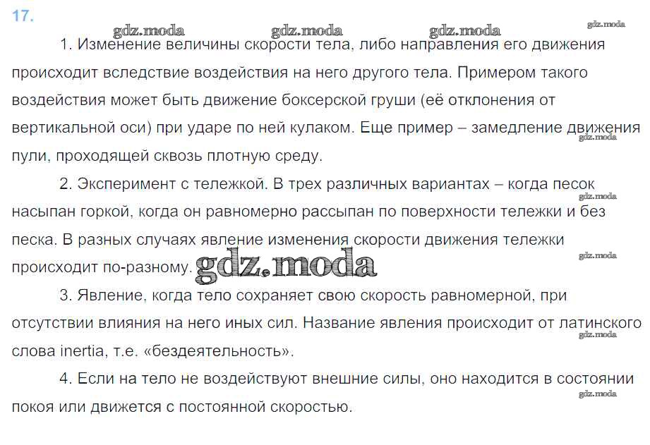 ОТВЕТ на задание № §17 Учебник по Физике 7 класс Перышкин Вертикаль