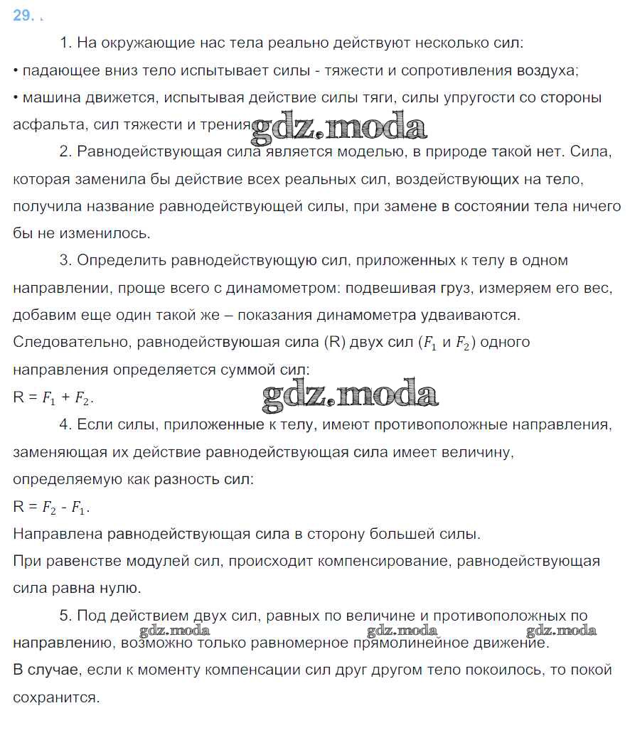 ГДЗ решение к заданию № §29 Физика 7 класс Перышкин А.В. Дрофа 2016 ФГОС бесплатно на гдз.мода!
