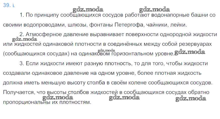 ОТВЕТ на задание № §39 Учебник по Физике 7 класс Перышкин Вертикаль