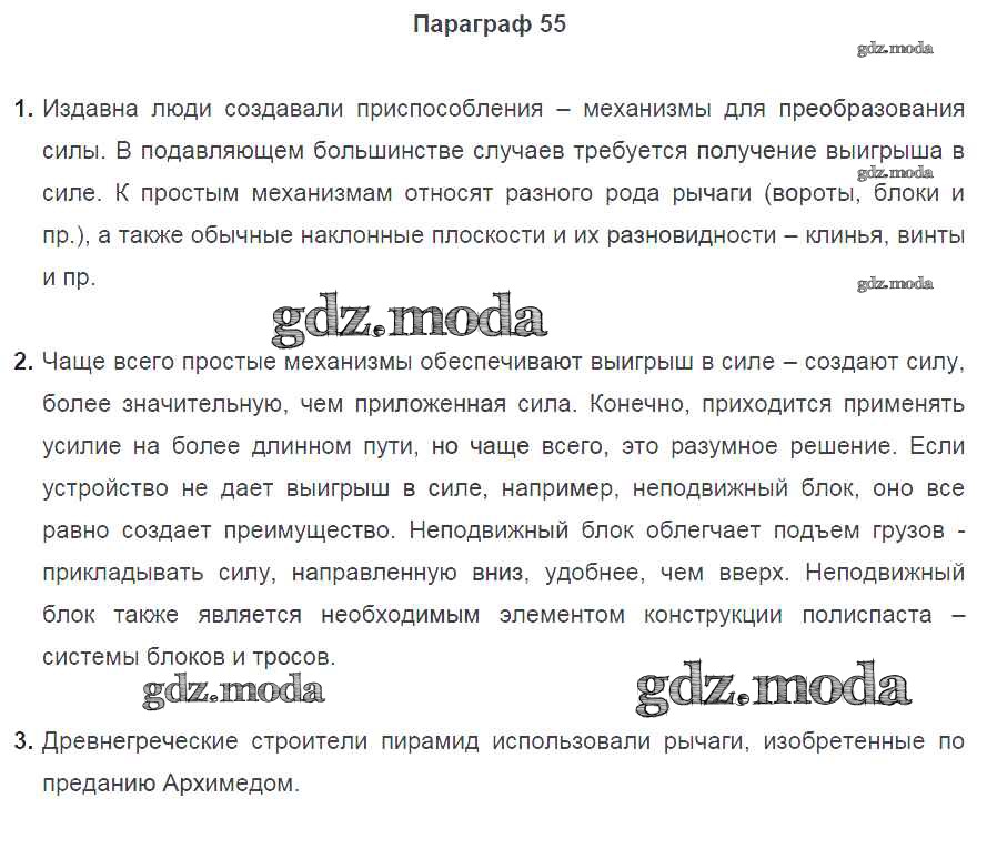 ГДЗ решение к заданию № §55 Физика 7 класс Перышкин А.В. Дрофа 2016 ФГОС бесплатно на гдз.мода!