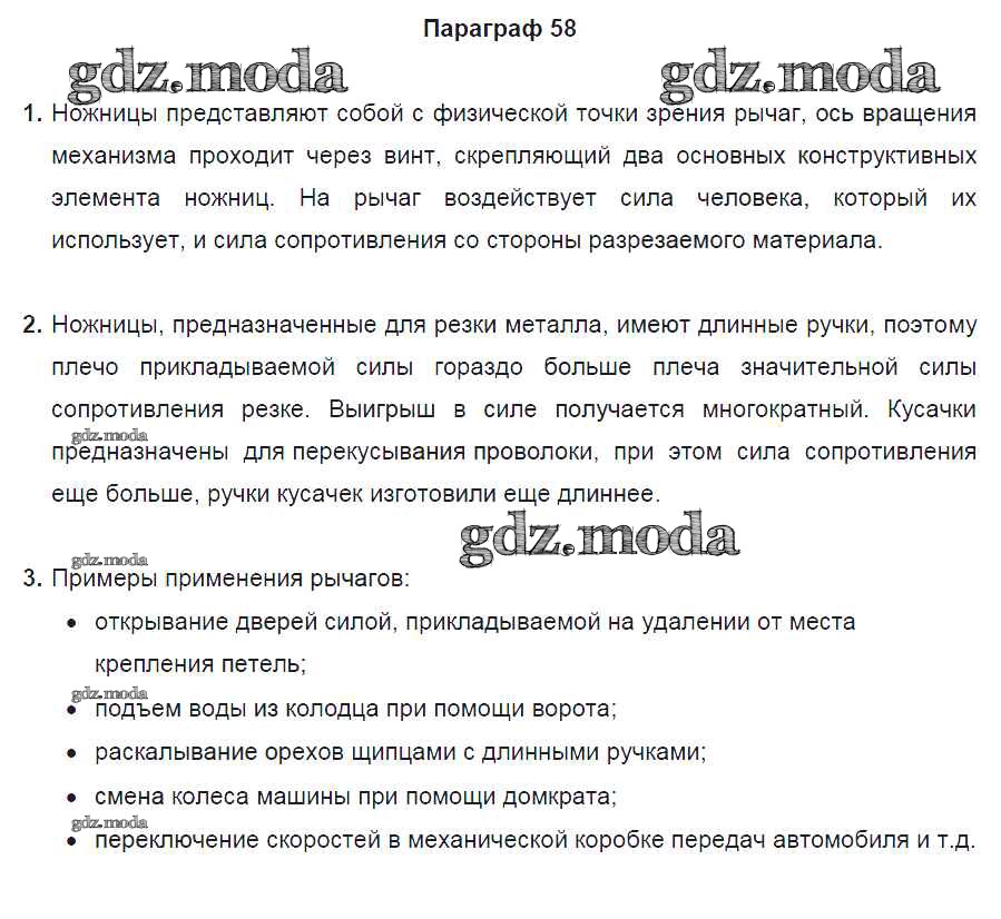 ГДЗ решение к заданию № §58 Физика 7 класс Перышкин А.В. Дрофа 2016 ФГОС бесплатно на гдз.мода!