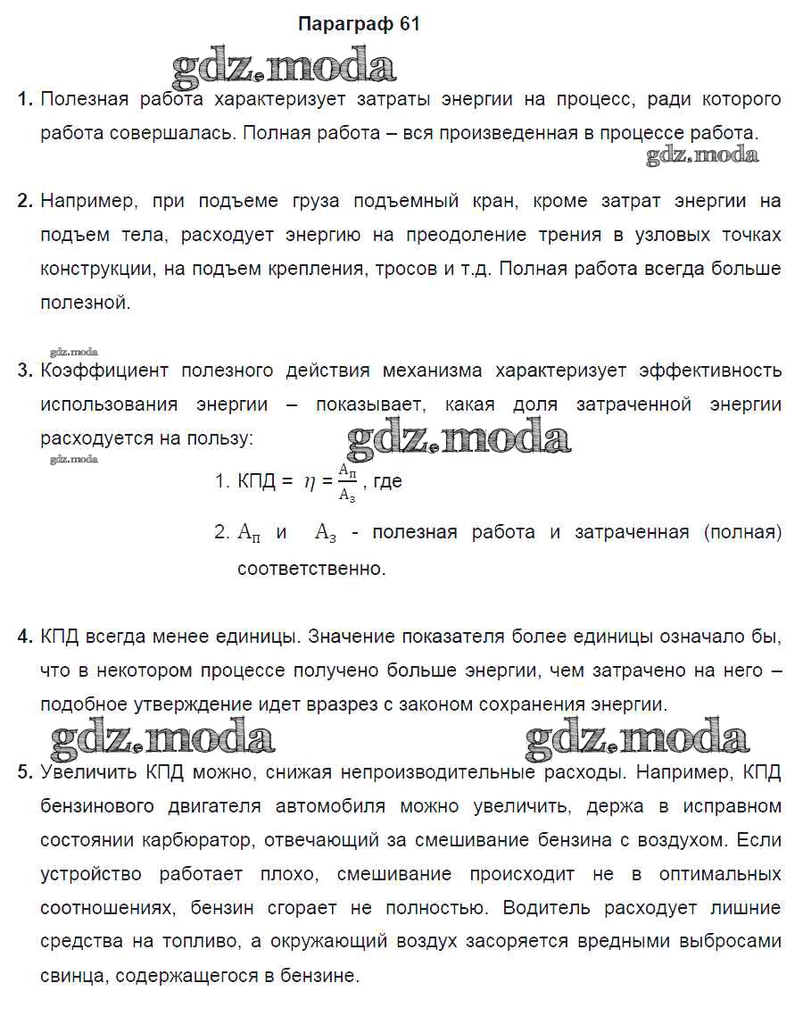 ГДЗ решение к заданию № §61 Физика 7 класс Перышкин А.В. Дрофа 2016 ФГОС бесплатно на гдз.мода!
