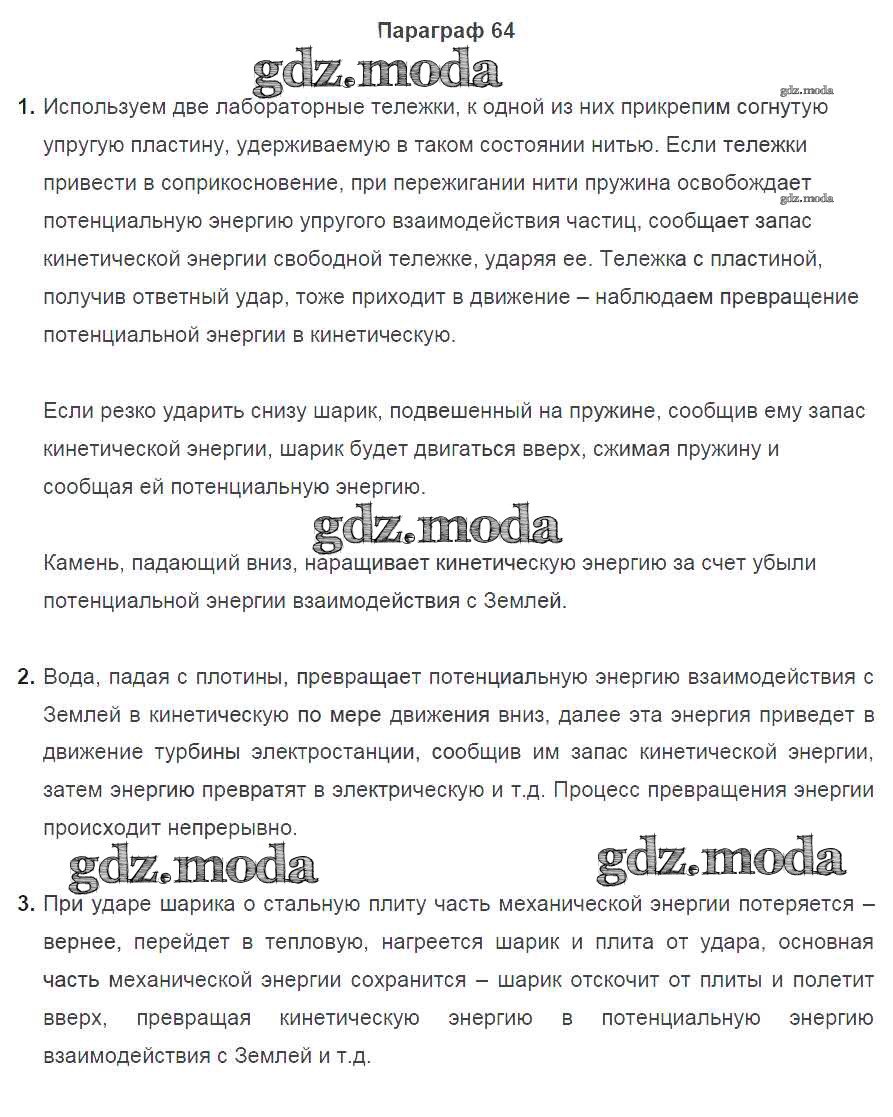 ГДЗ решение к заданию № §64 Физика 7 класс Перышкин А.В. Дрофа 2016 ФГОС бесплатно на гдз.мода!