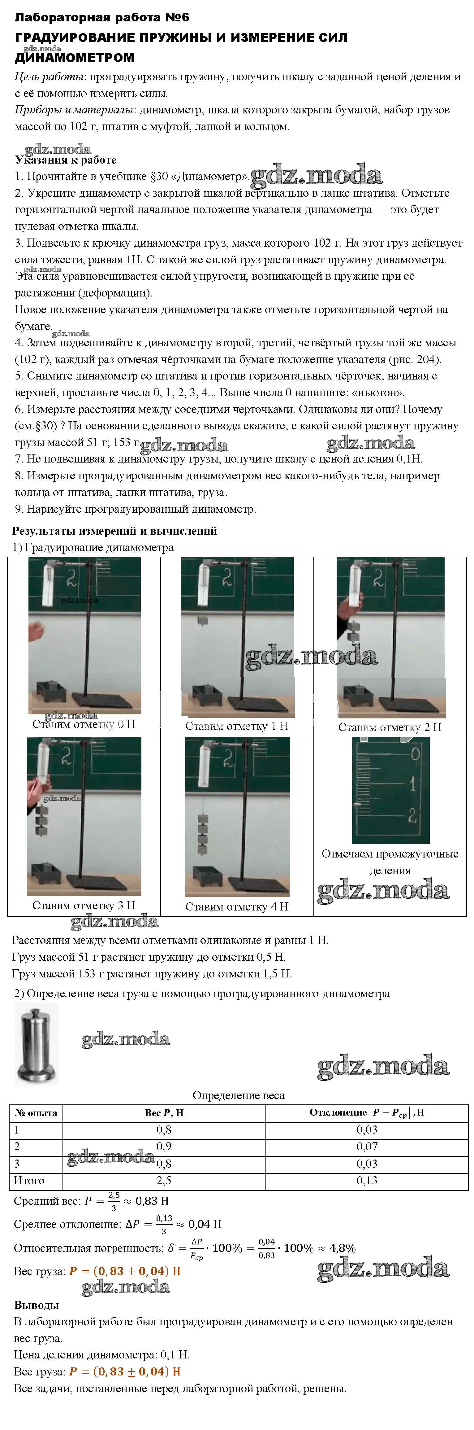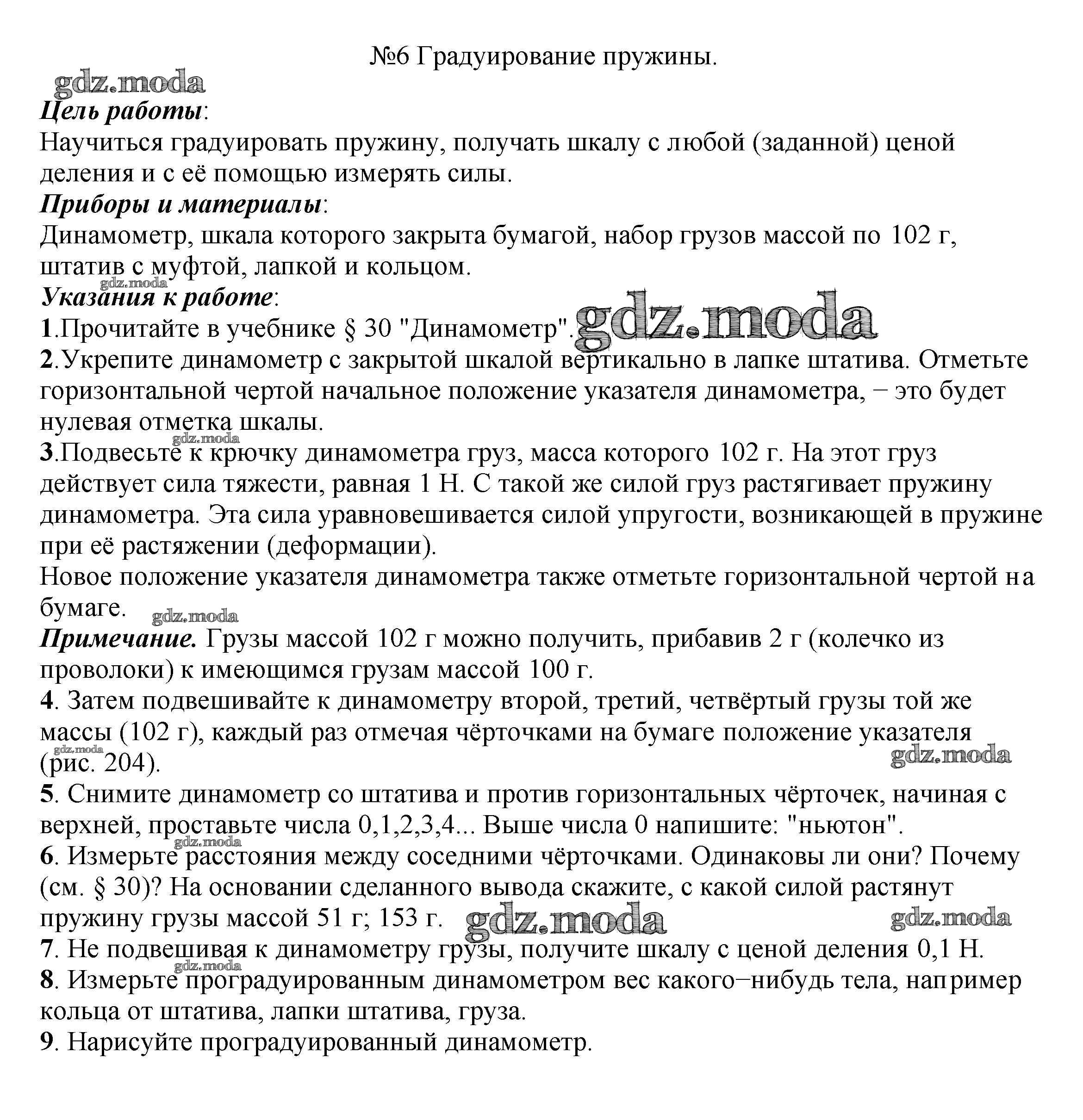 ОТВЕТ на задание № 6 Учебник по Физике 7 класс Перышкин Вертикаль