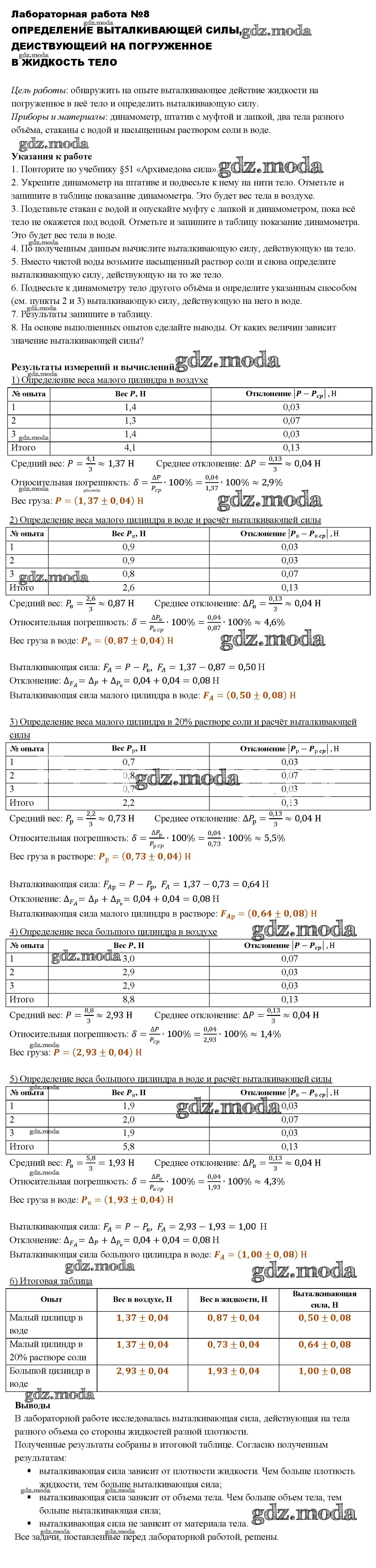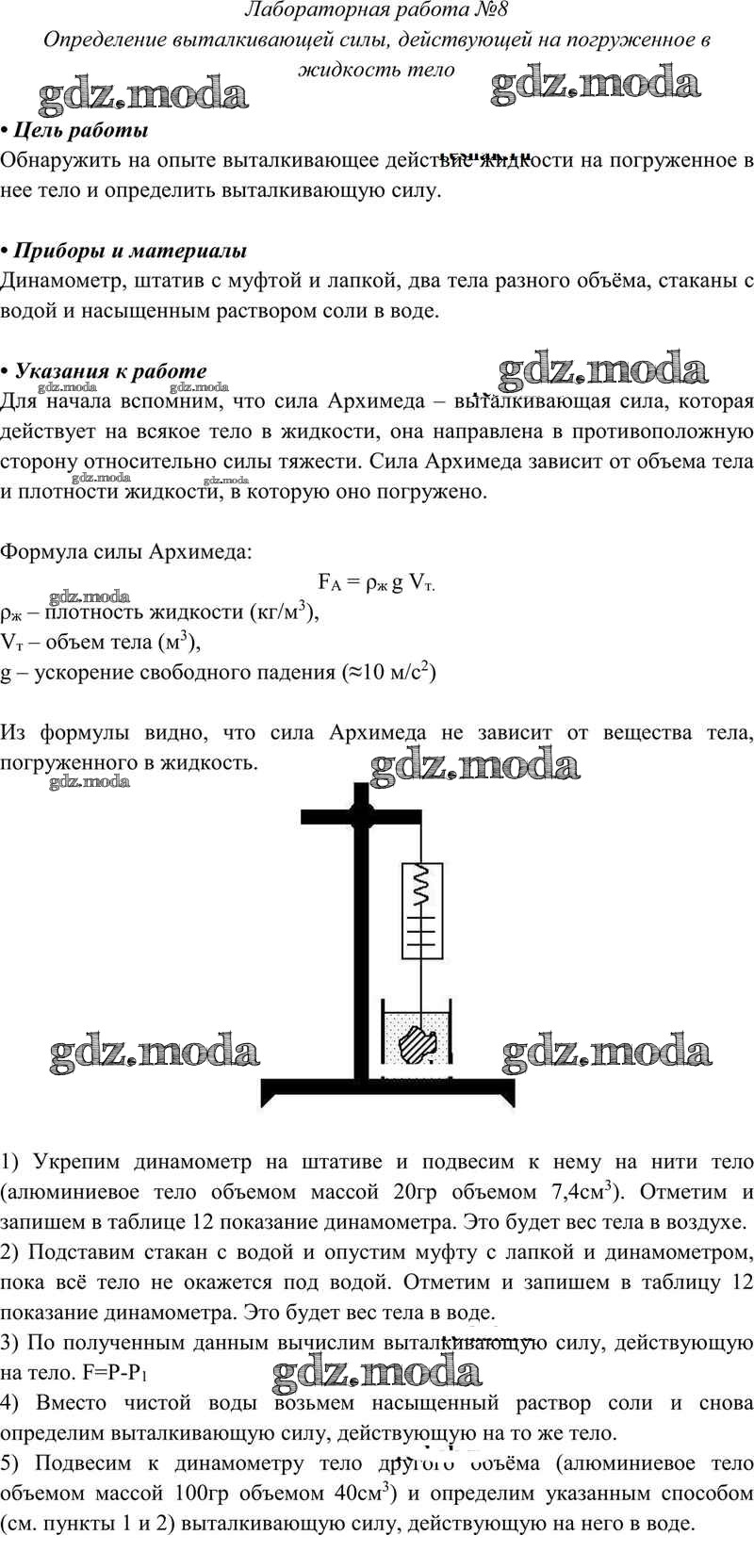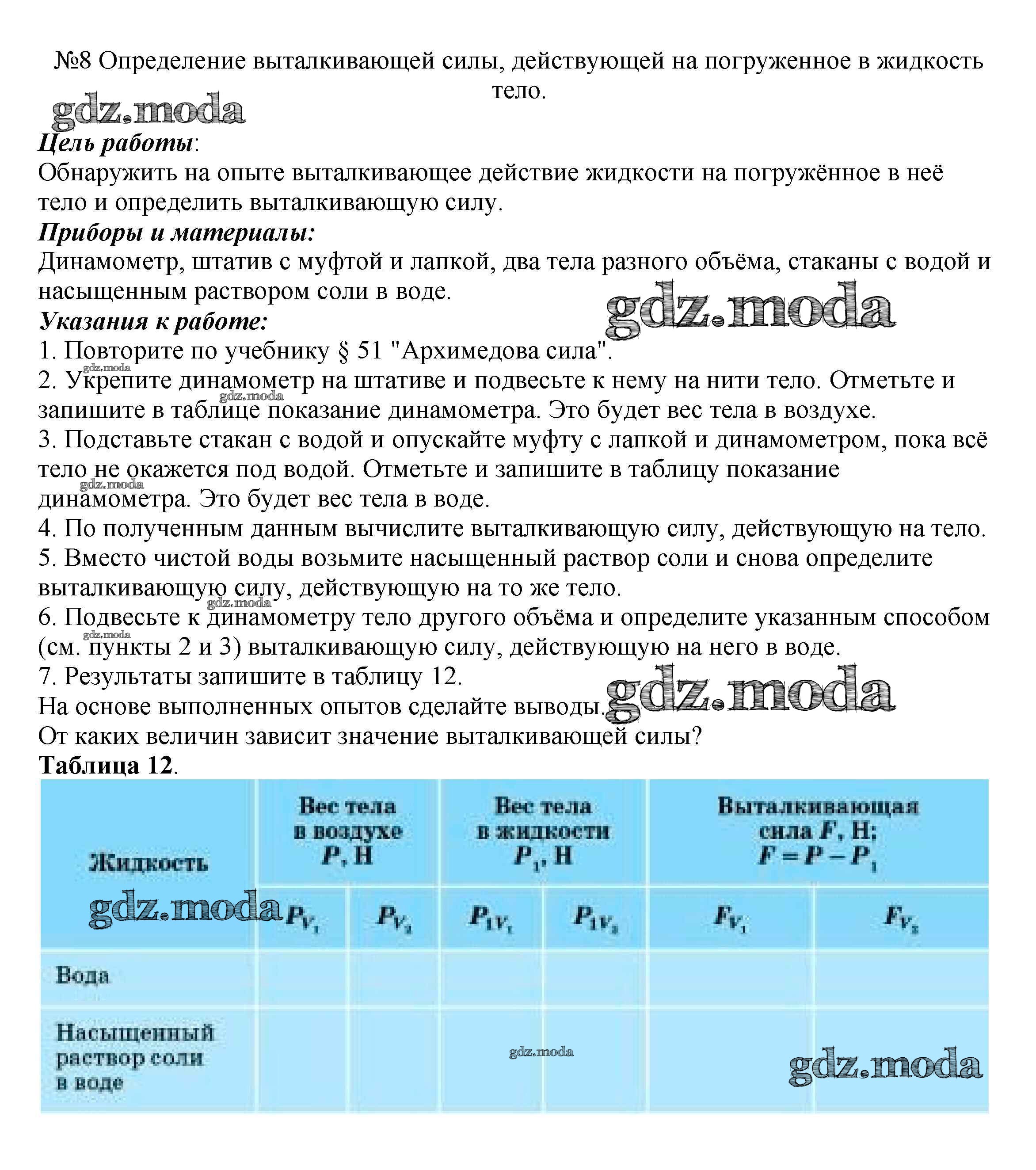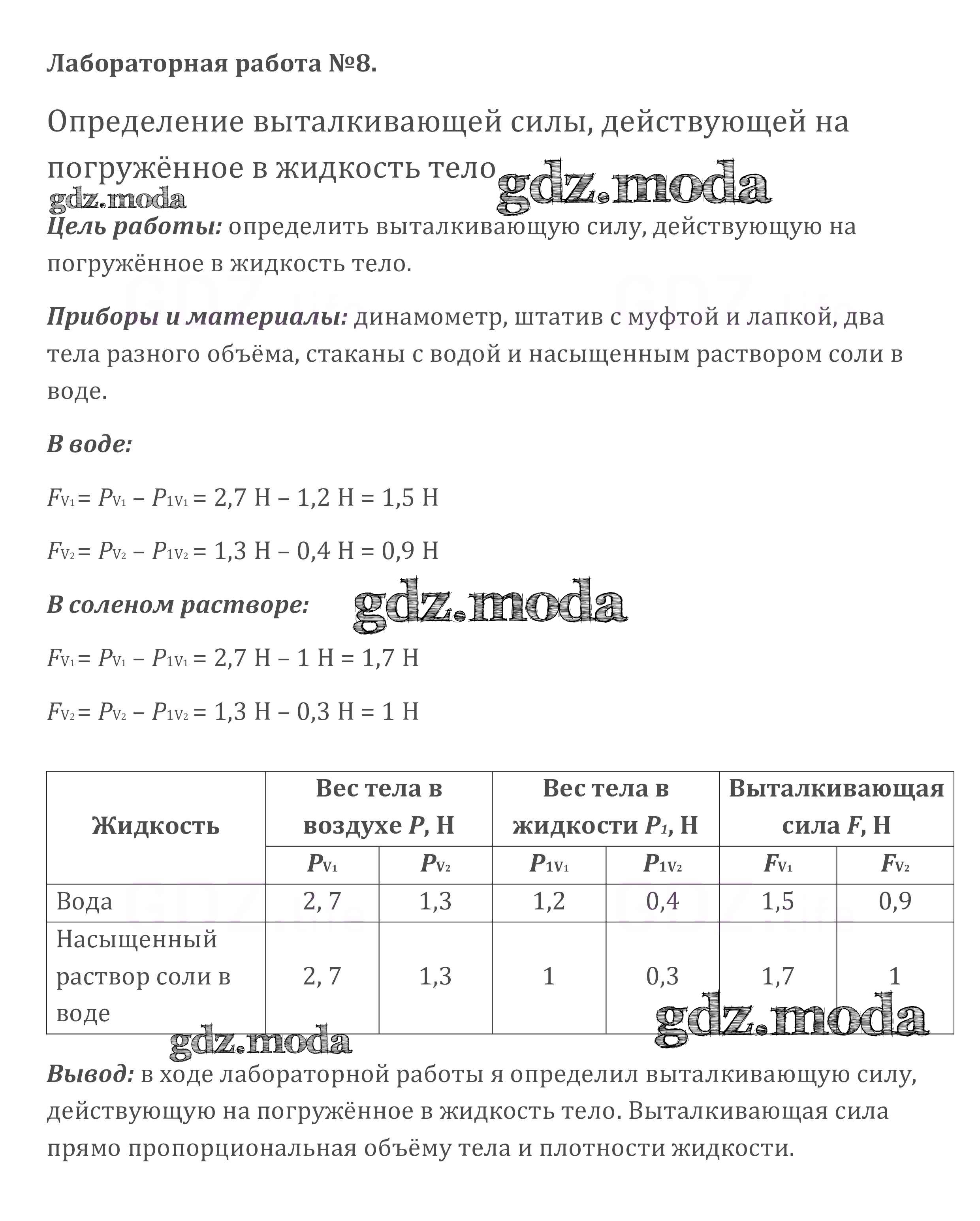 ОТВЕТ на задание № 8 Учебник по Физике 7 класс Перышкин Вертикаль