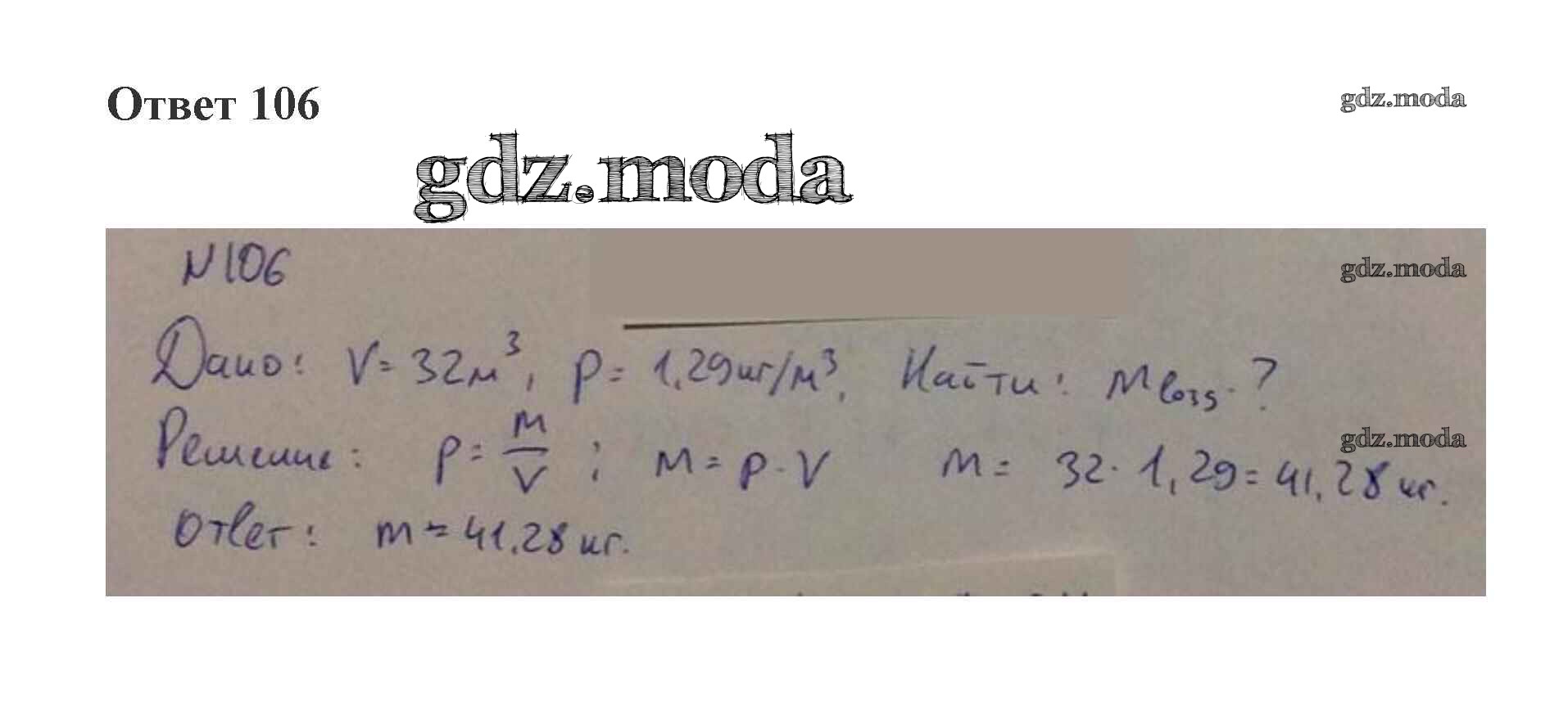 ГДЗ решение к заданию № 106 Физика 7 класс рабочая тетрадь Пурышева Дрофа 2018 ФГОС бесплатно на гдз.мода!
