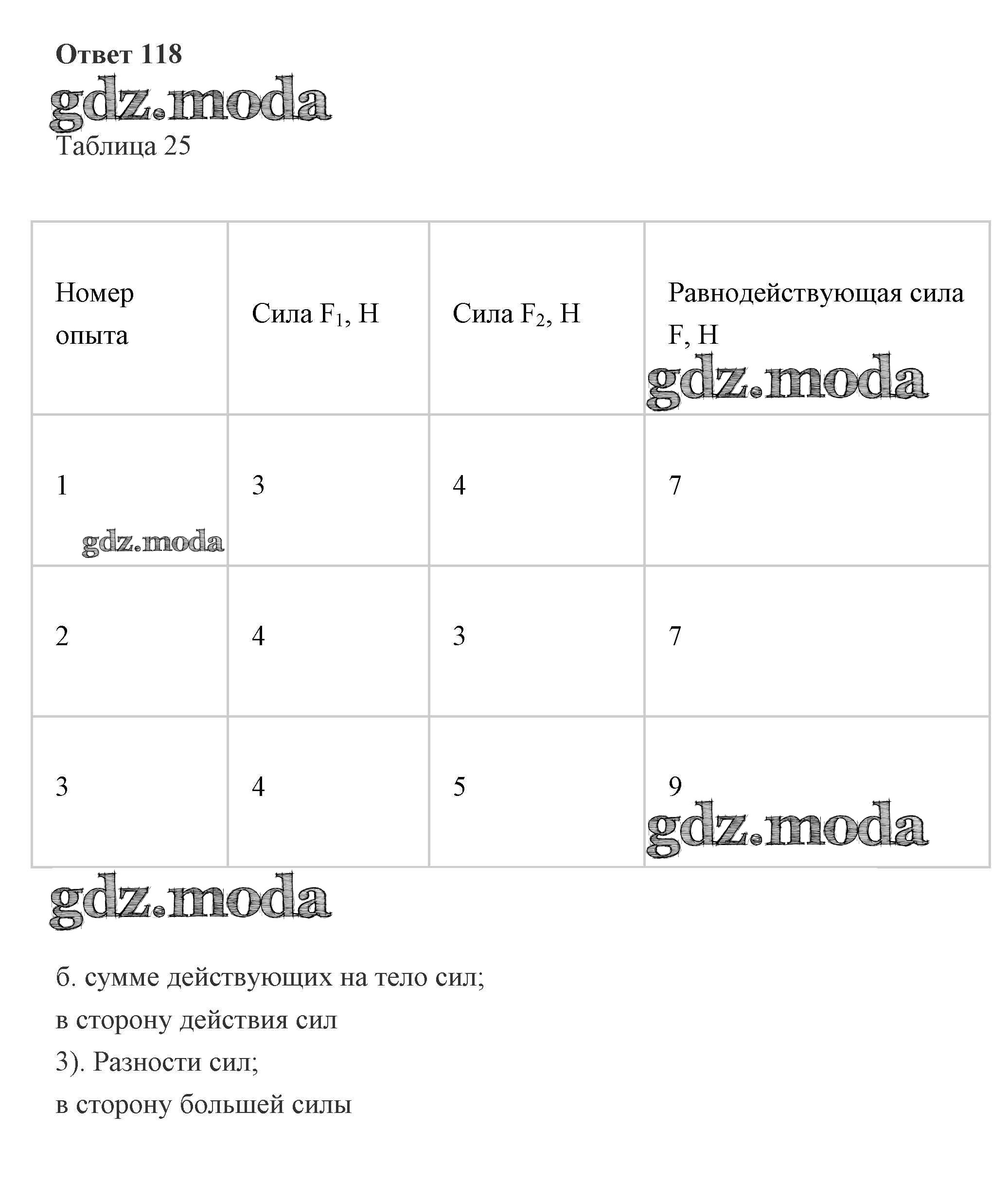 ГДЗ решение к заданию № 118 Физика 7 класс рабочая тетрадь Пурышева Дрофа 2018 ФГОС бесплатно на гдз.мода!