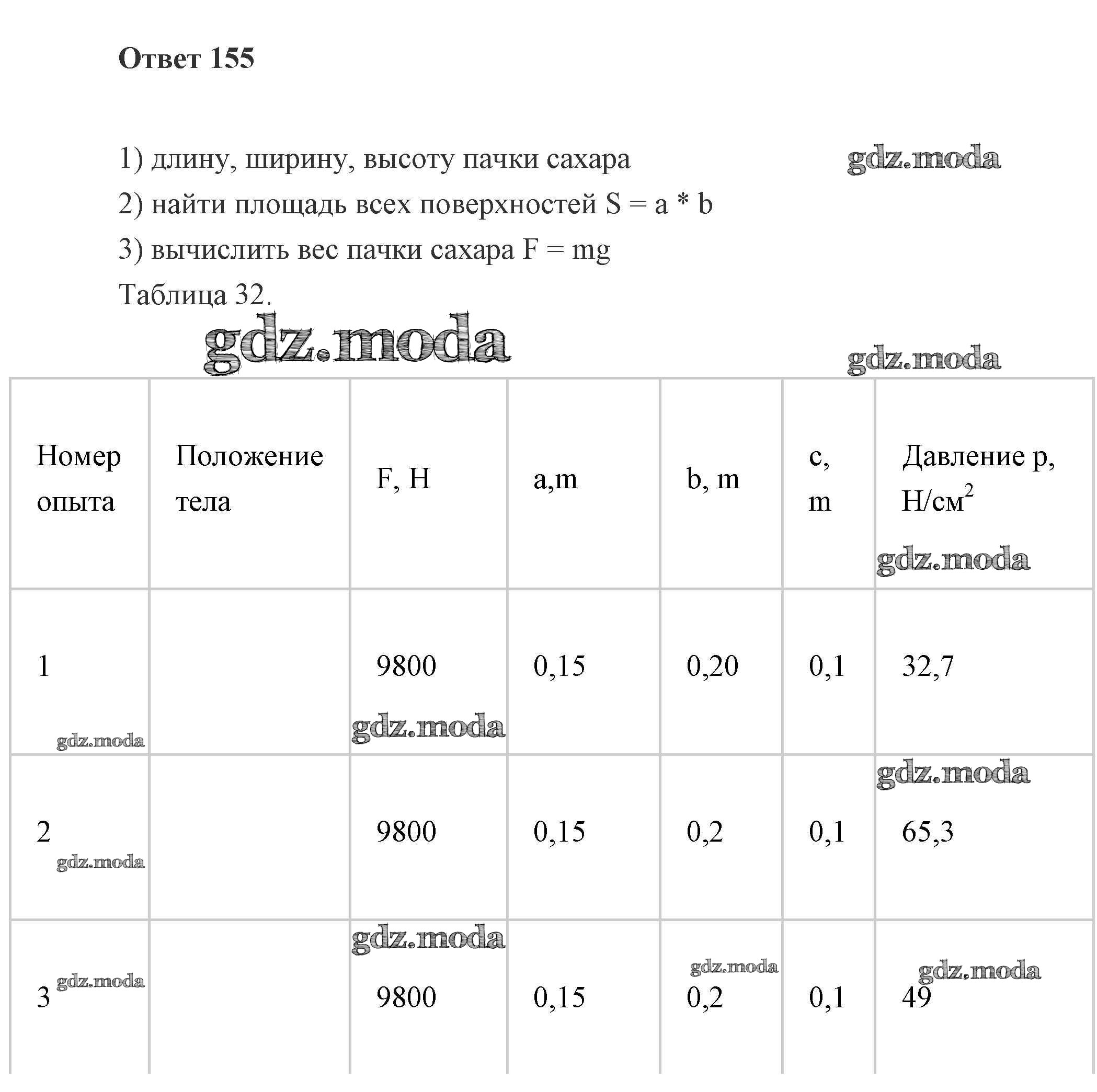 ГДЗ решение к заданию № 155 Физика 7 класс рабочая тетрадь Пурышева Дрофа 2018 ФГОС бесплатно на гдз.мода!