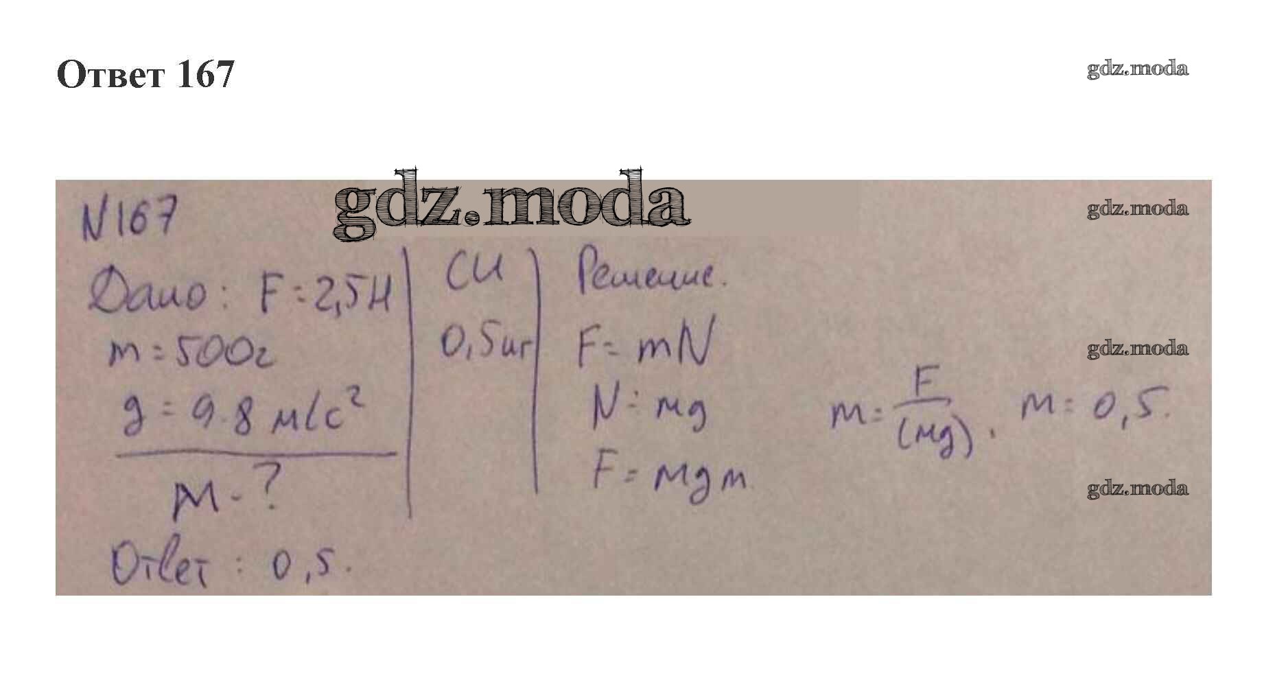 ГДЗ решение к заданию № 167 Физика 7 класс рабочая тетрадь Пурышева Дрофа 2018 ФГОС бесплатно на гдз.мода!