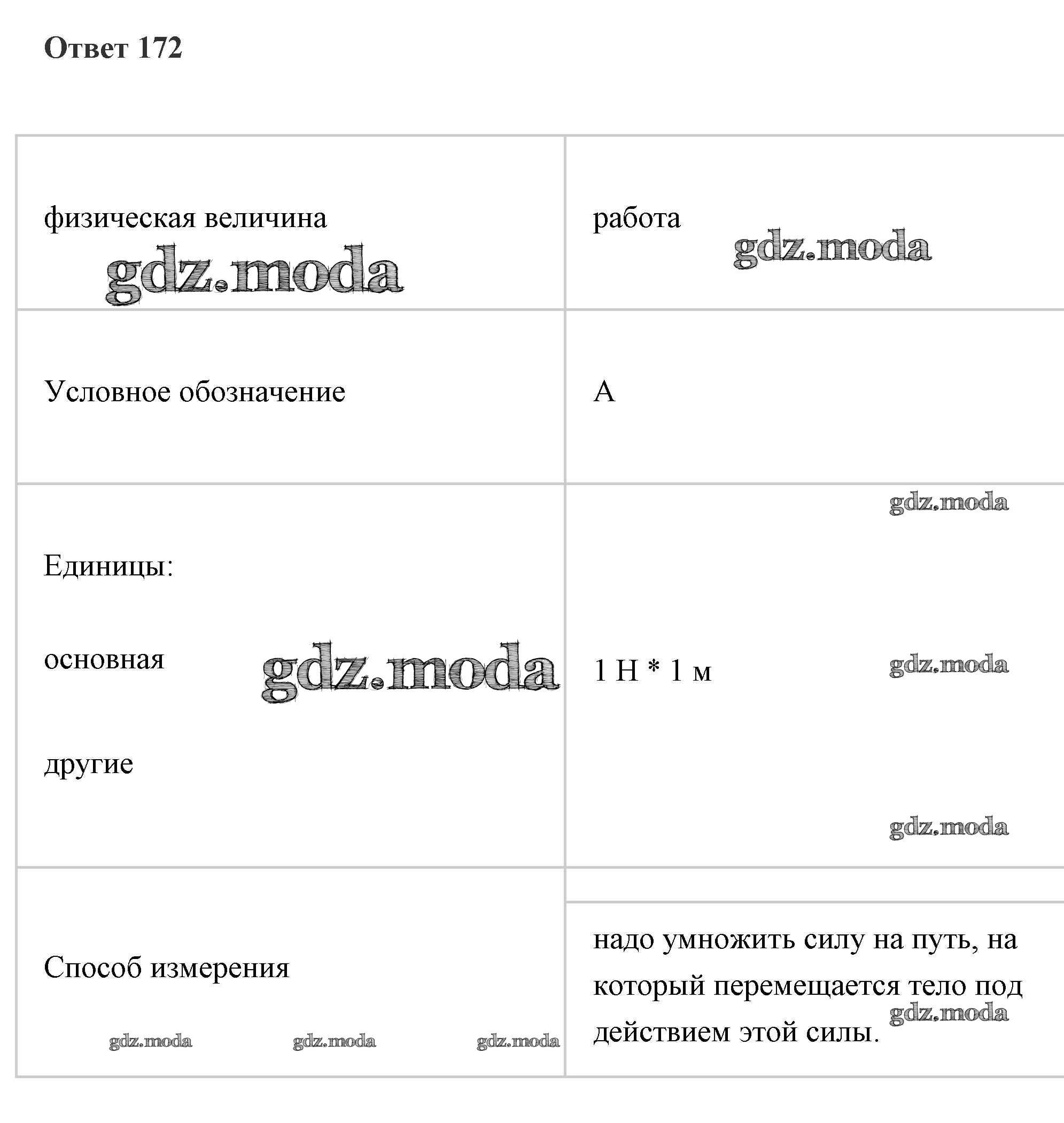 ГДЗ решение к заданию № 172 Физика 7 класс рабочая тетрадь Пурышева Дрофа 2018 ФГОС бесплатно на гдз.мода!