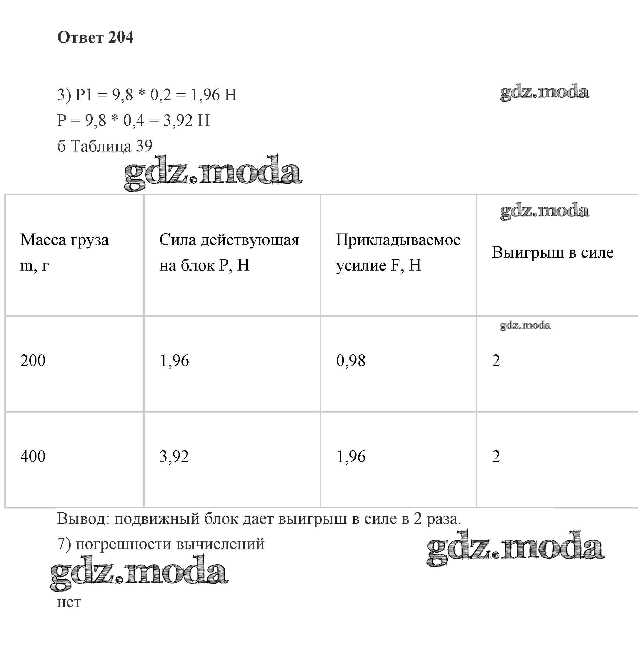 ОТВЕТ на задание № 204 Рабочая тетрадь по Физике 7 класс Пурышева