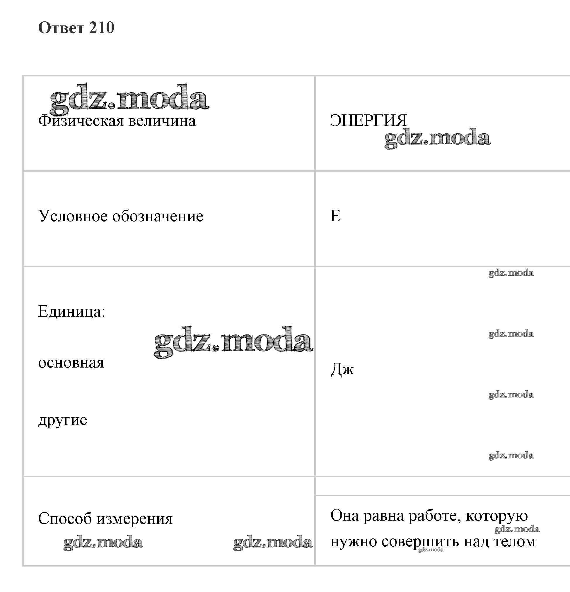 ГДЗ решение к заданию № 210 Физика 7 класс рабочая тетрадь Пурышева Дрофа 2018 ФГОС бесплатно на гдз.мода!