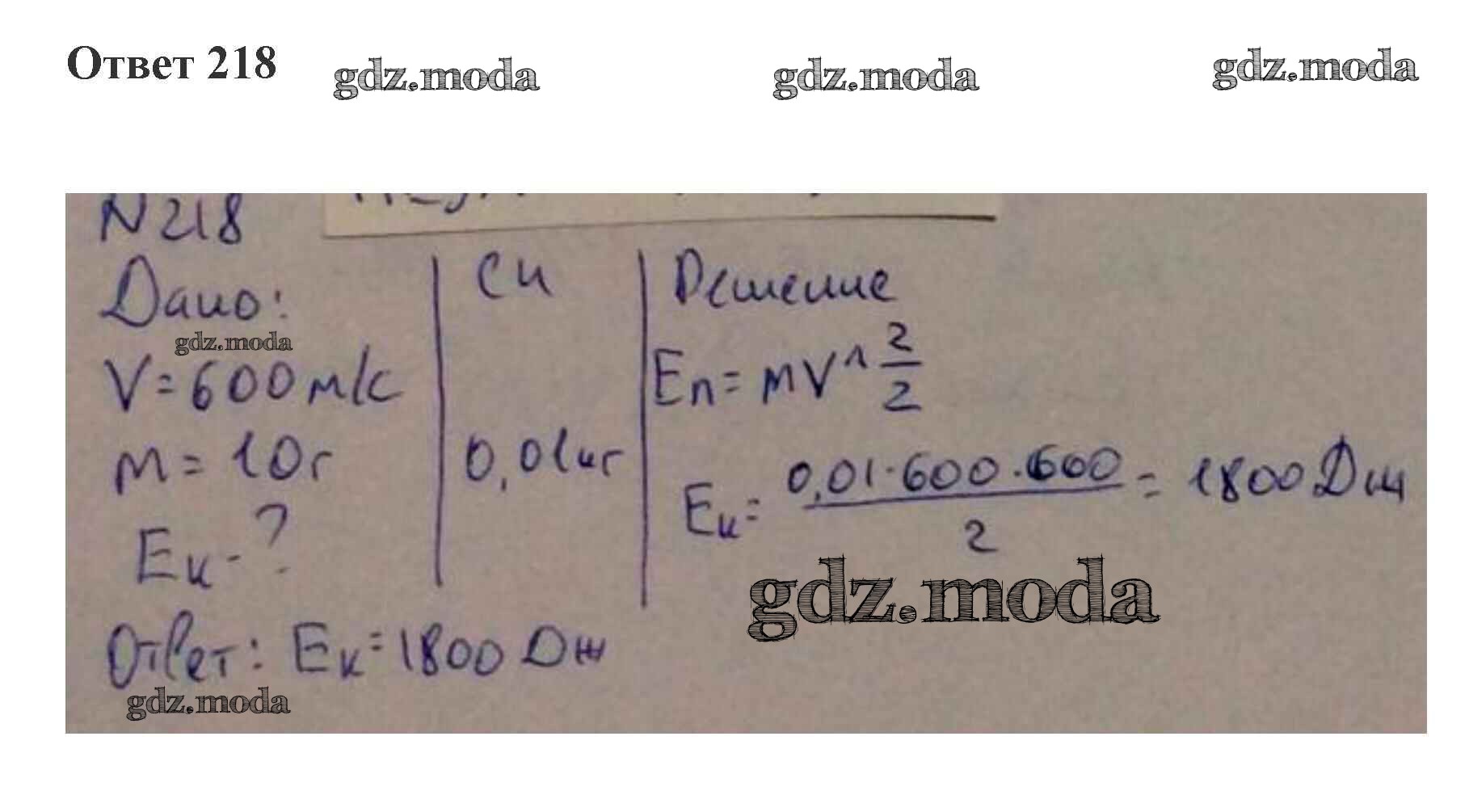 ГДЗ решение к заданию № 218 Физика 7 класс рабочая тетрадь Пурышева Дрофа 2018 ФГОС бесплатно на гдз.мода!