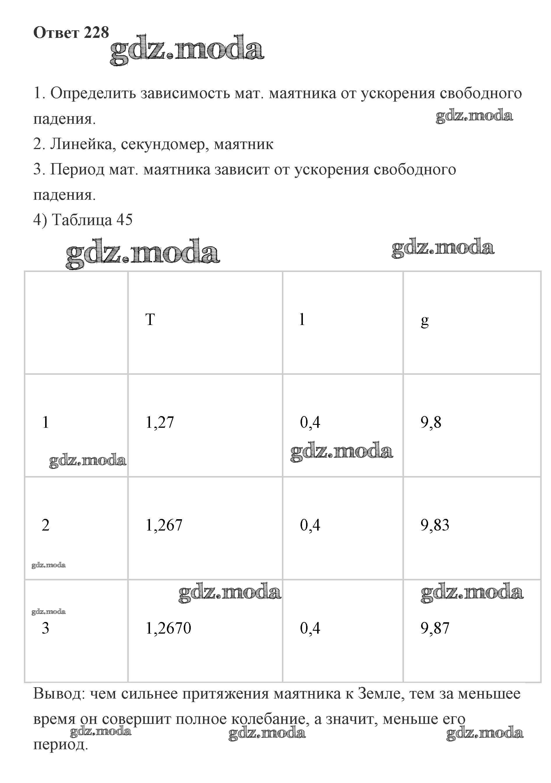 ГДЗ решение к заданию № 228 Физика 7 класс рабочая тетрадь Пурышева Дрофа 2018 ФГОС бесплатно на гдз.мода!