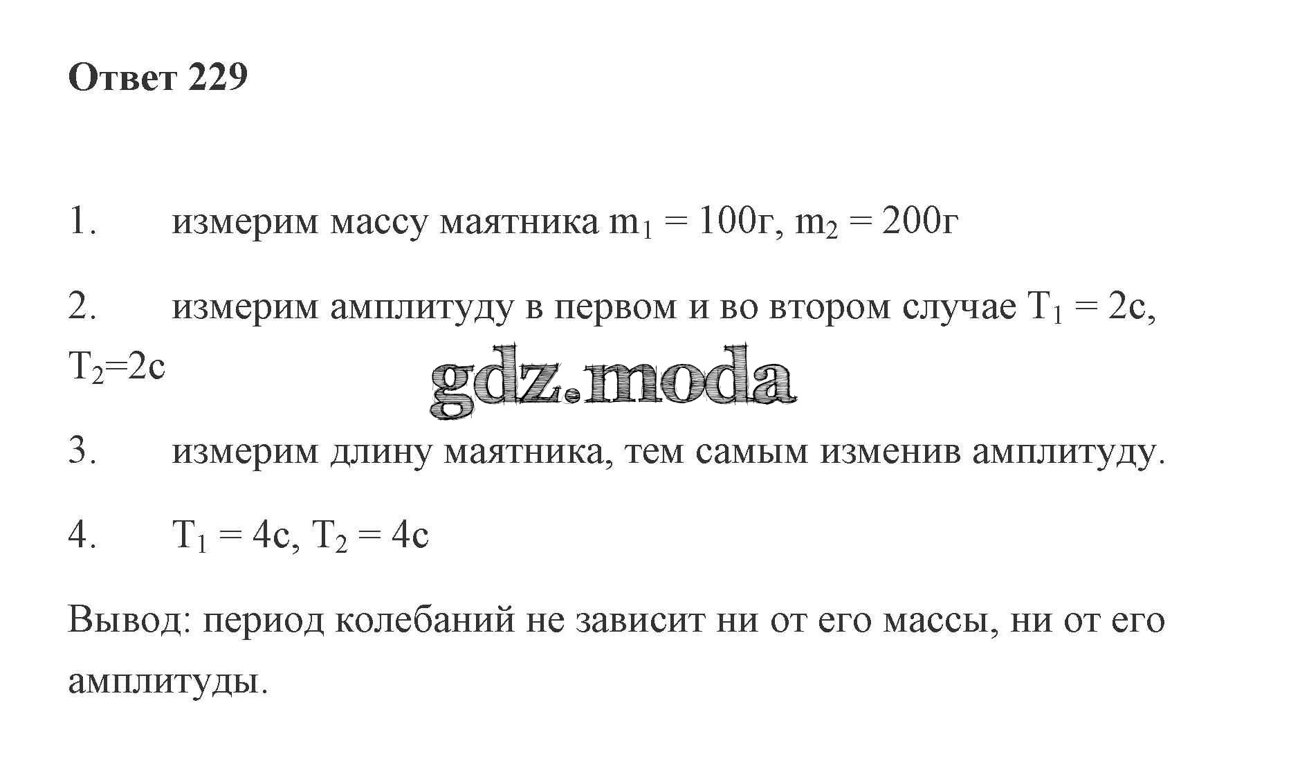 ОТВЕТ на задание № 229 Рабочая тетрадь по Физике 7 класс Пурышева