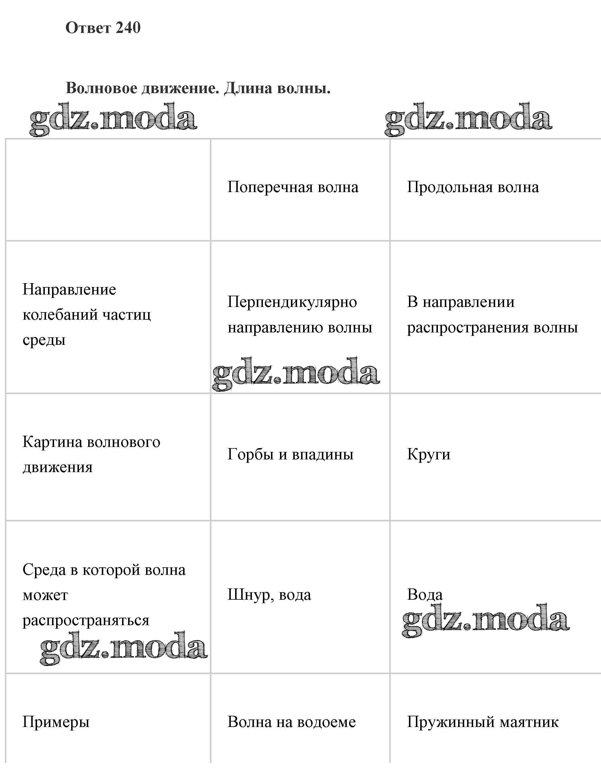 ГДЗ решение к заданию № 240 Физика 7 класс рабочая тетрадь Пурышева Дрофа 2018 ФГОС бесплатно на гдз.мода!