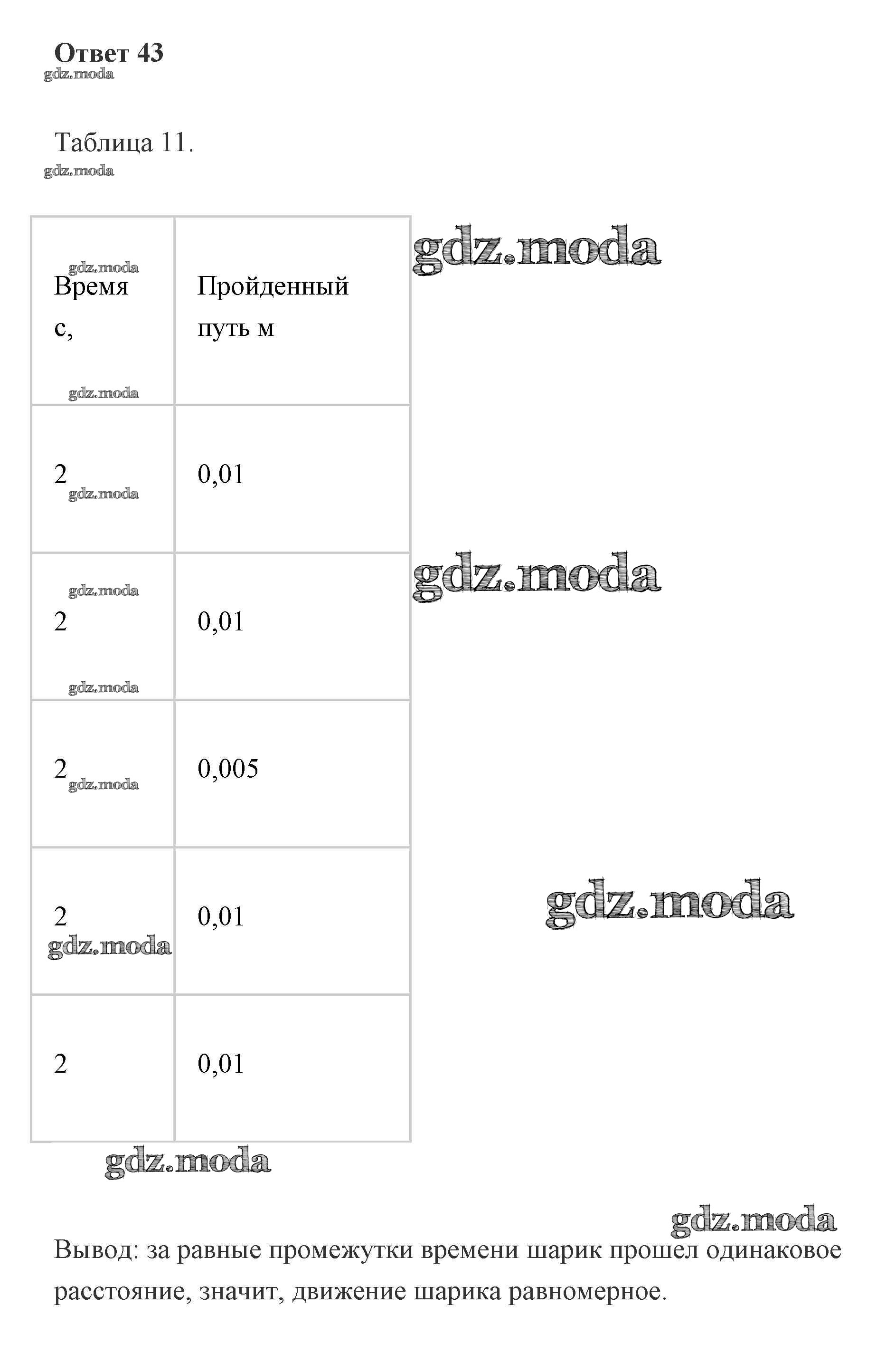 ГДЗ решение к заданию № 43 Физика 7 класс рабочая тетрадь Пурышева Дрофа 2018 ФГОС бесплатно на гдз.мода!