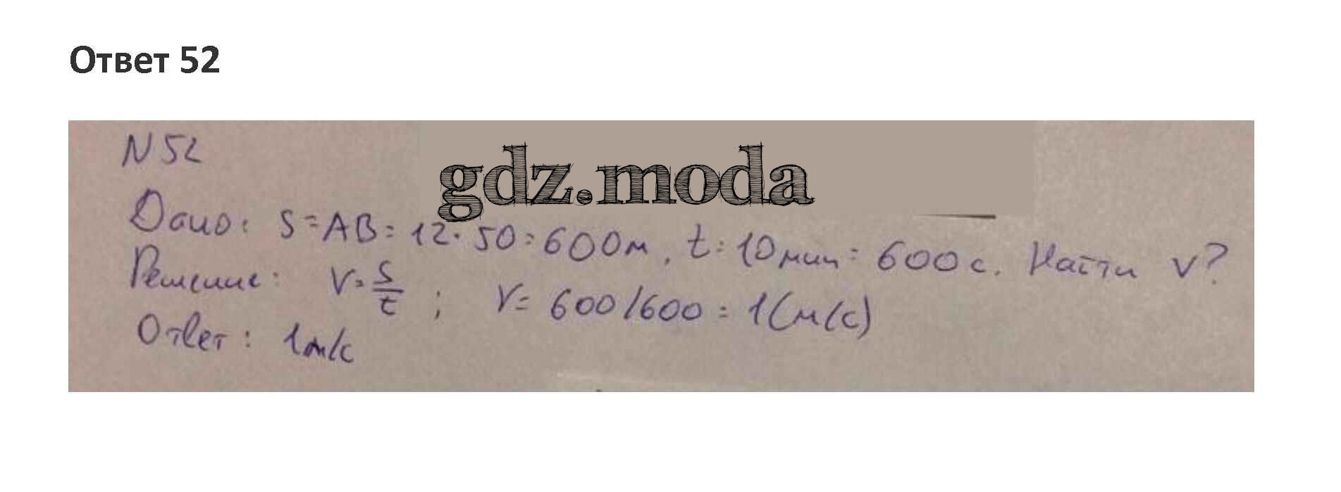 ОТВЕТ на задание № 52 Рабочая тетрадь по Физике 7 класс Пурышева