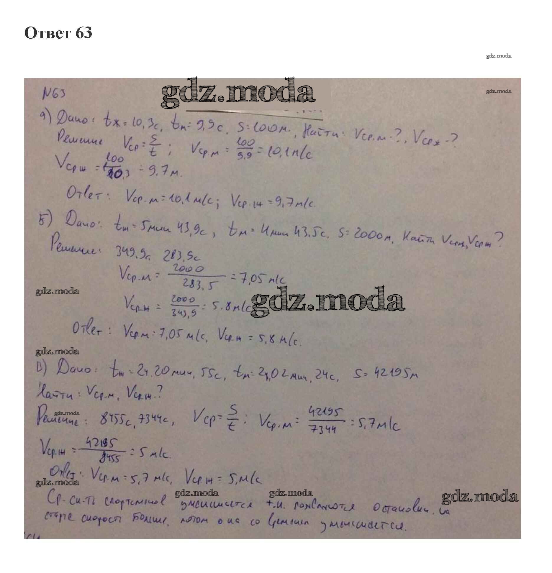 ОТВЕТ на задание № 63 Рабочая тетрадь по Физике 7 класс Пурышева