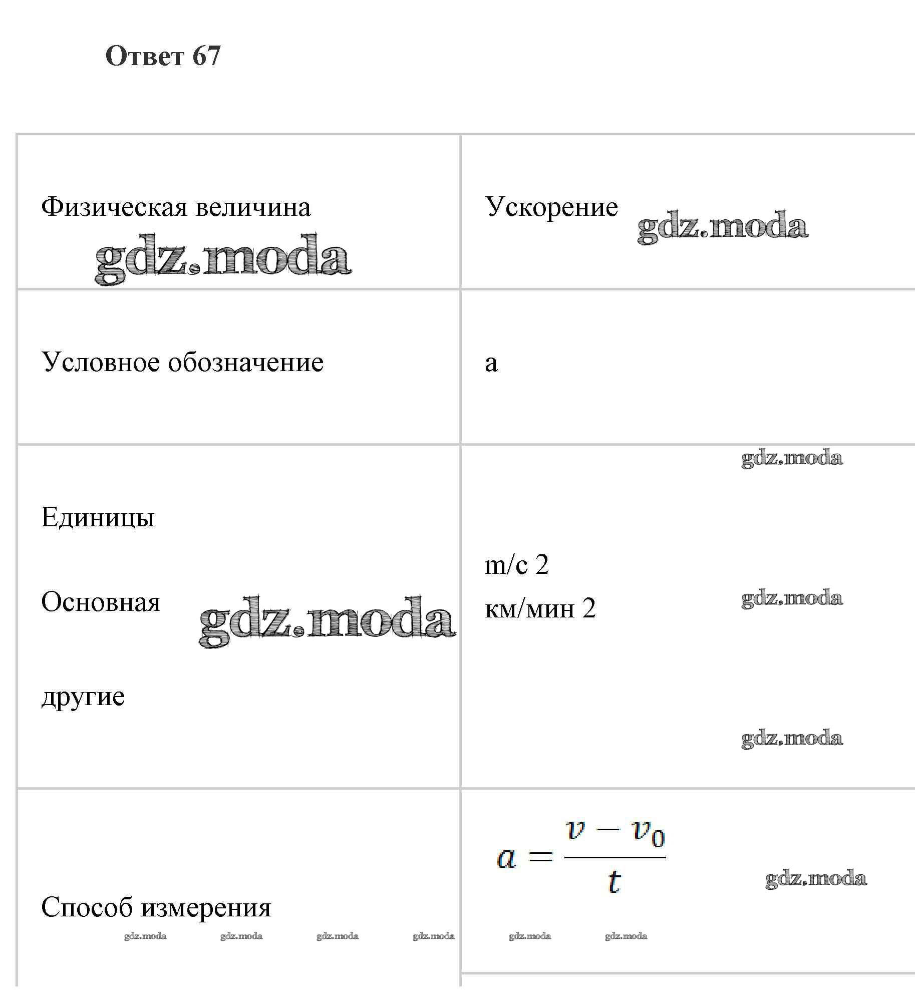 ГДЗ решение к заданию № 67 Физика 7 класс рабочая тетрадь Пурышева Дрофа 2018 ФГОС бесплатно на гдз.мода!