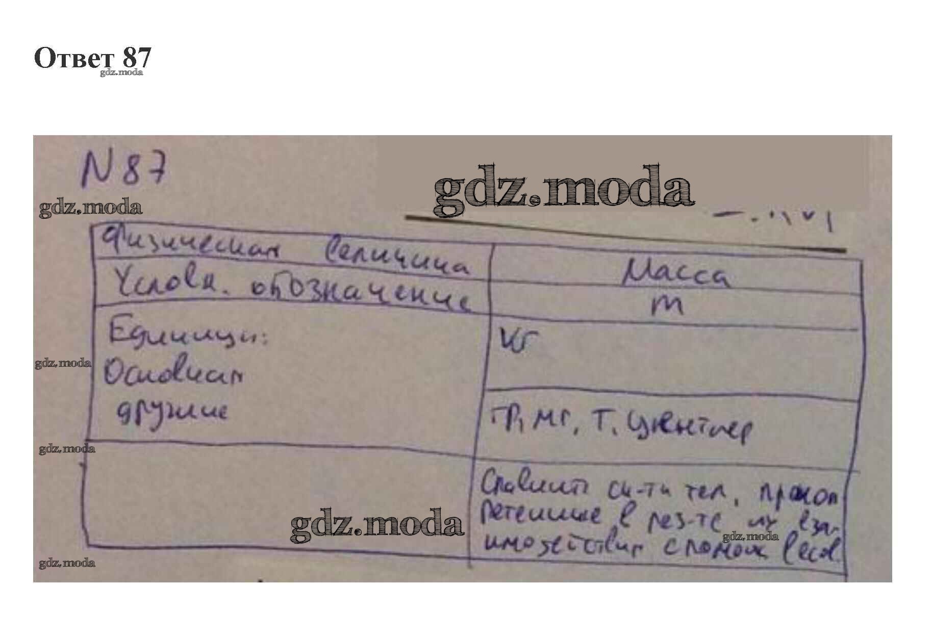 ГДЗ решение к заданию № 87 Физика 7 класс рабочая тетрадь Пурышева Дрофа 2018 ФГОС бесплатно на гдз.мода!