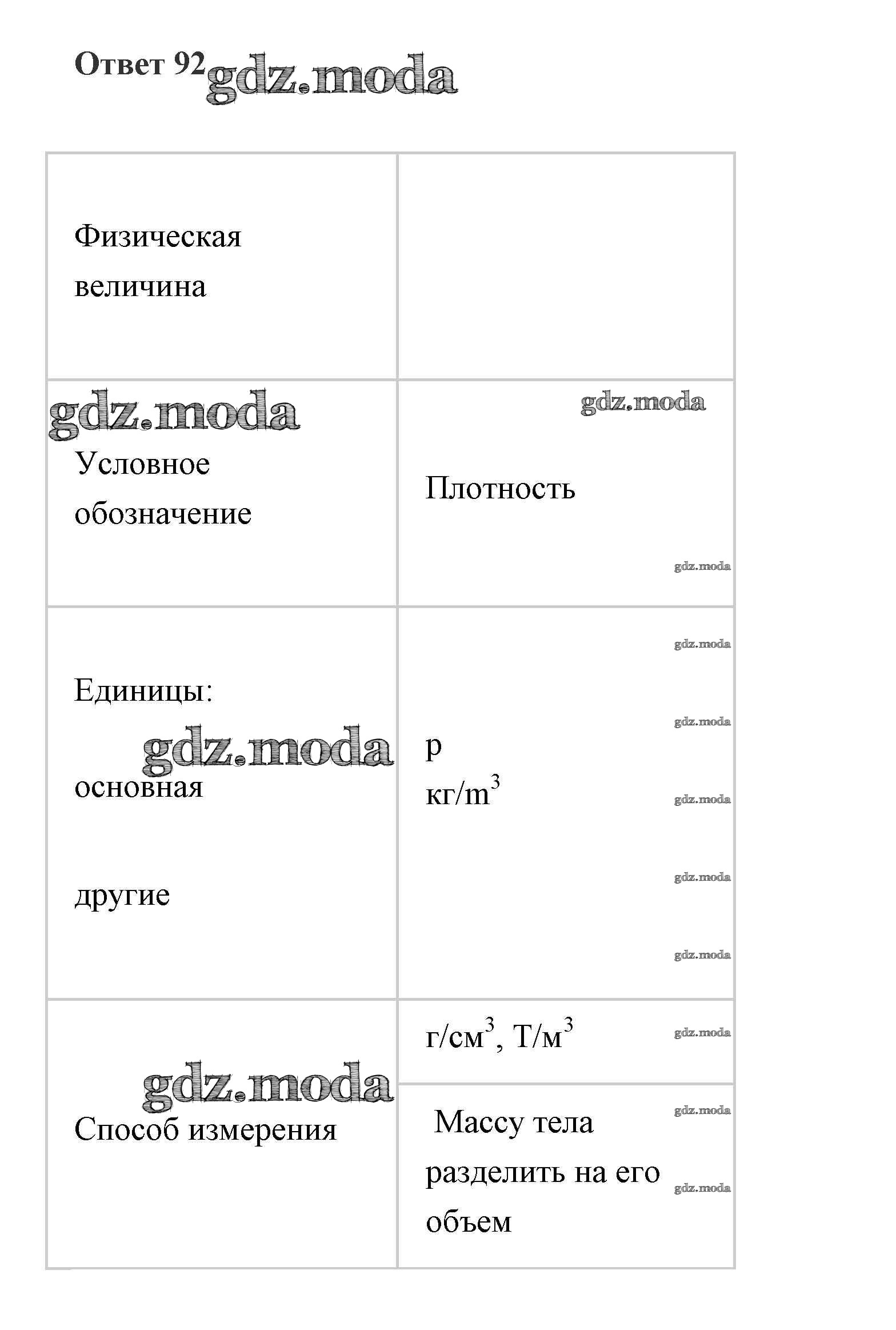 ГДЗ решение к заданию № 92 Физика 7 класс рабочая тетрадь Пурышева Дрофа 2018 ФГОС бесплатно на гдз.мода!