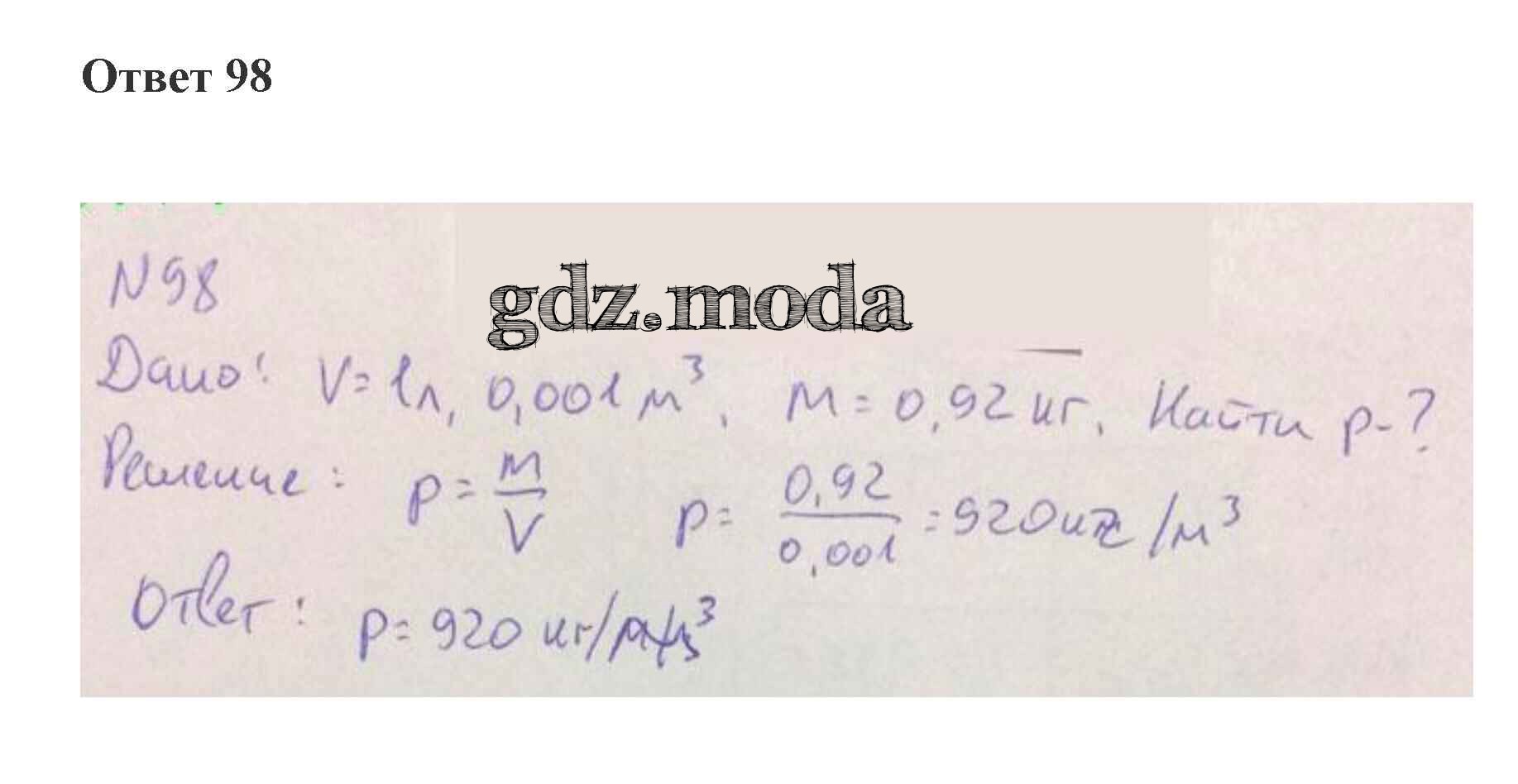 ГДЗ решение к заданию № 98 Физика 7 класс рабочая тетрадь Пурышева Дрофа 2018 ФГОС бесплатно на гдз.мода!