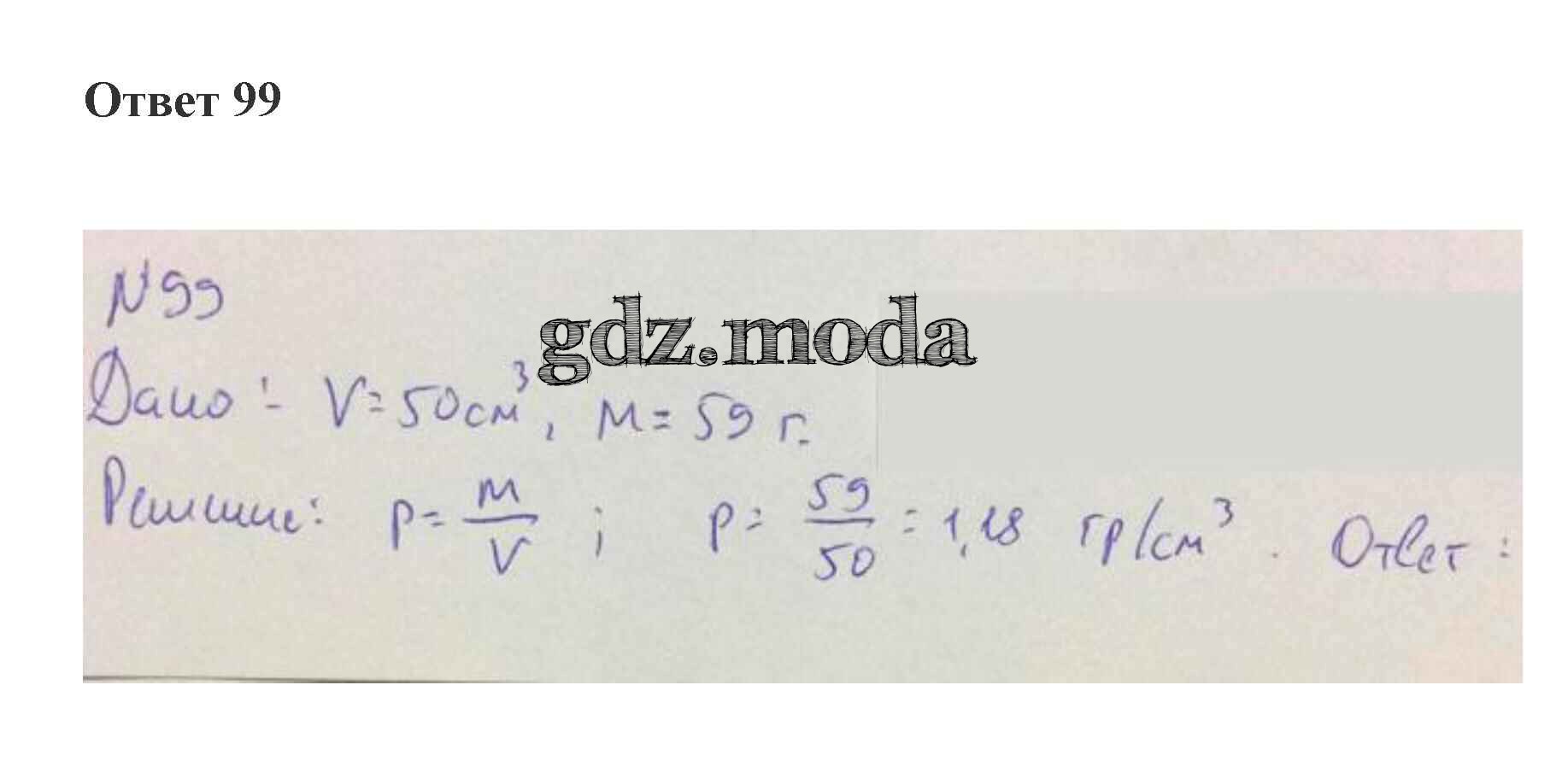 ОТВЕТ на задание № 99 Рабочая тетрадь по Физике 7 класс Пурышева