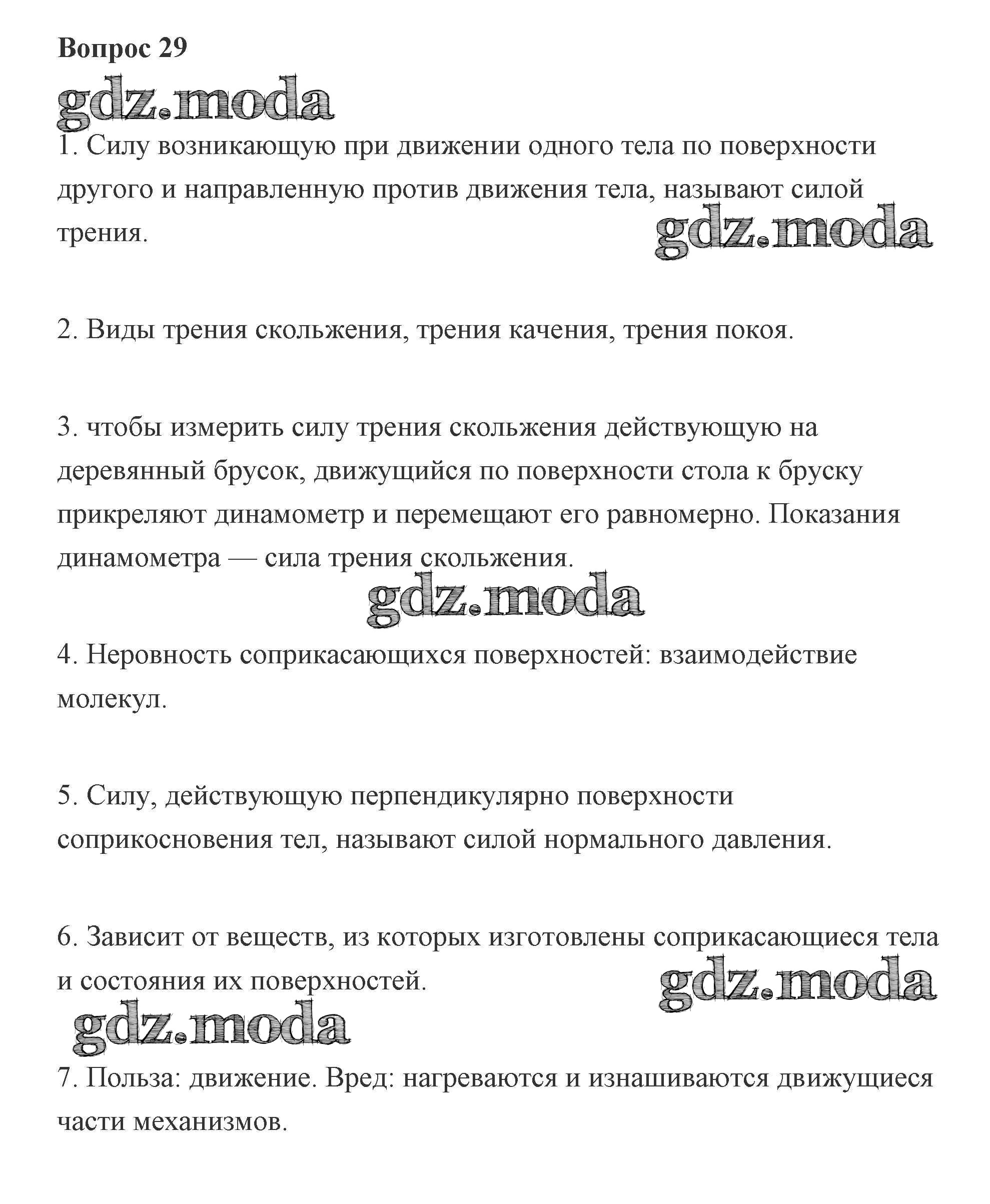 ГДЗ решение к заданию № 29 Физика 7 класс Пурышева Н.С. Дрофа 2011 ФГОС бесплатно на гдз.мода!