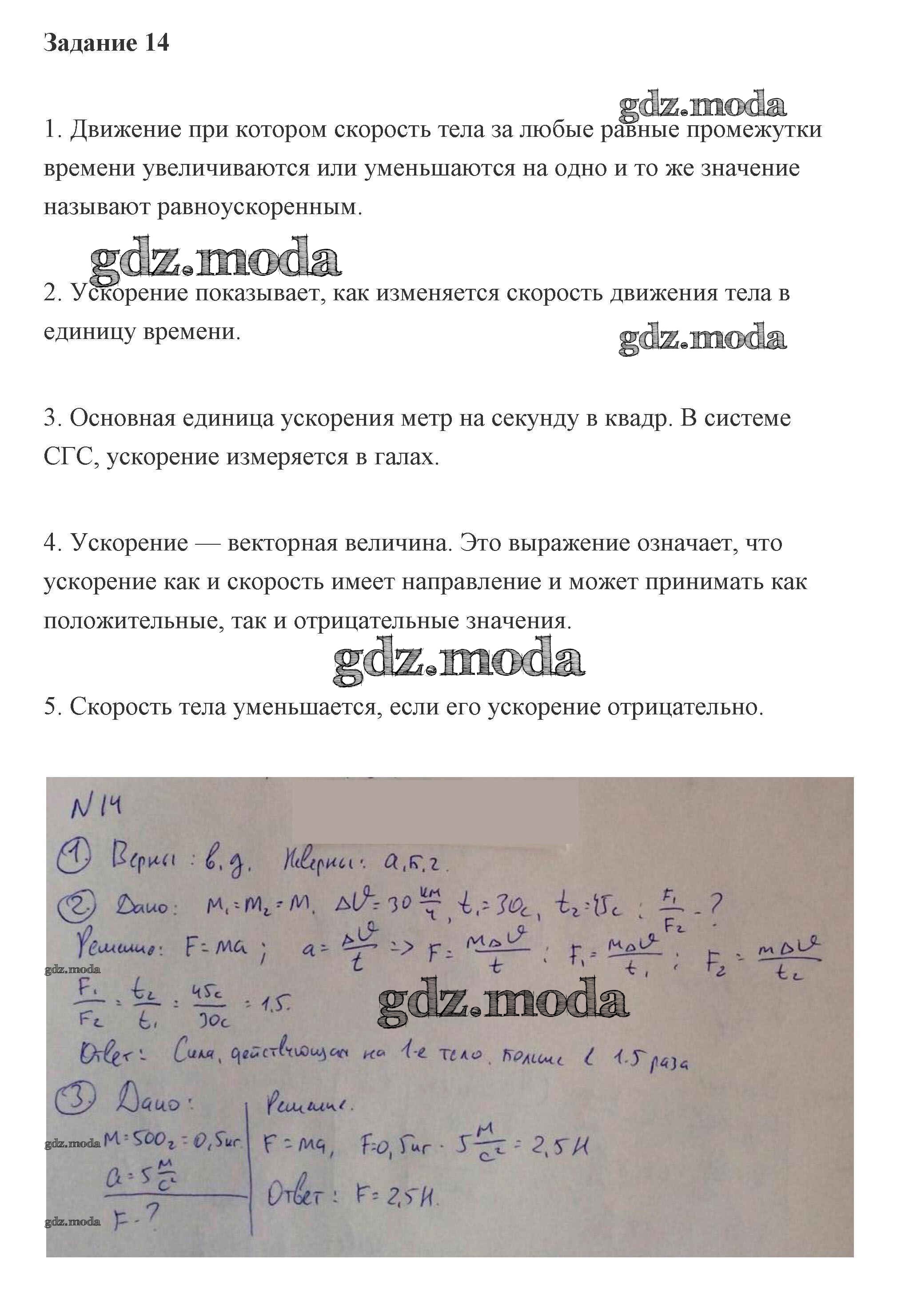 ОТВЕТ на задание № 14 Учебник по Физике 7 класс Пурышева