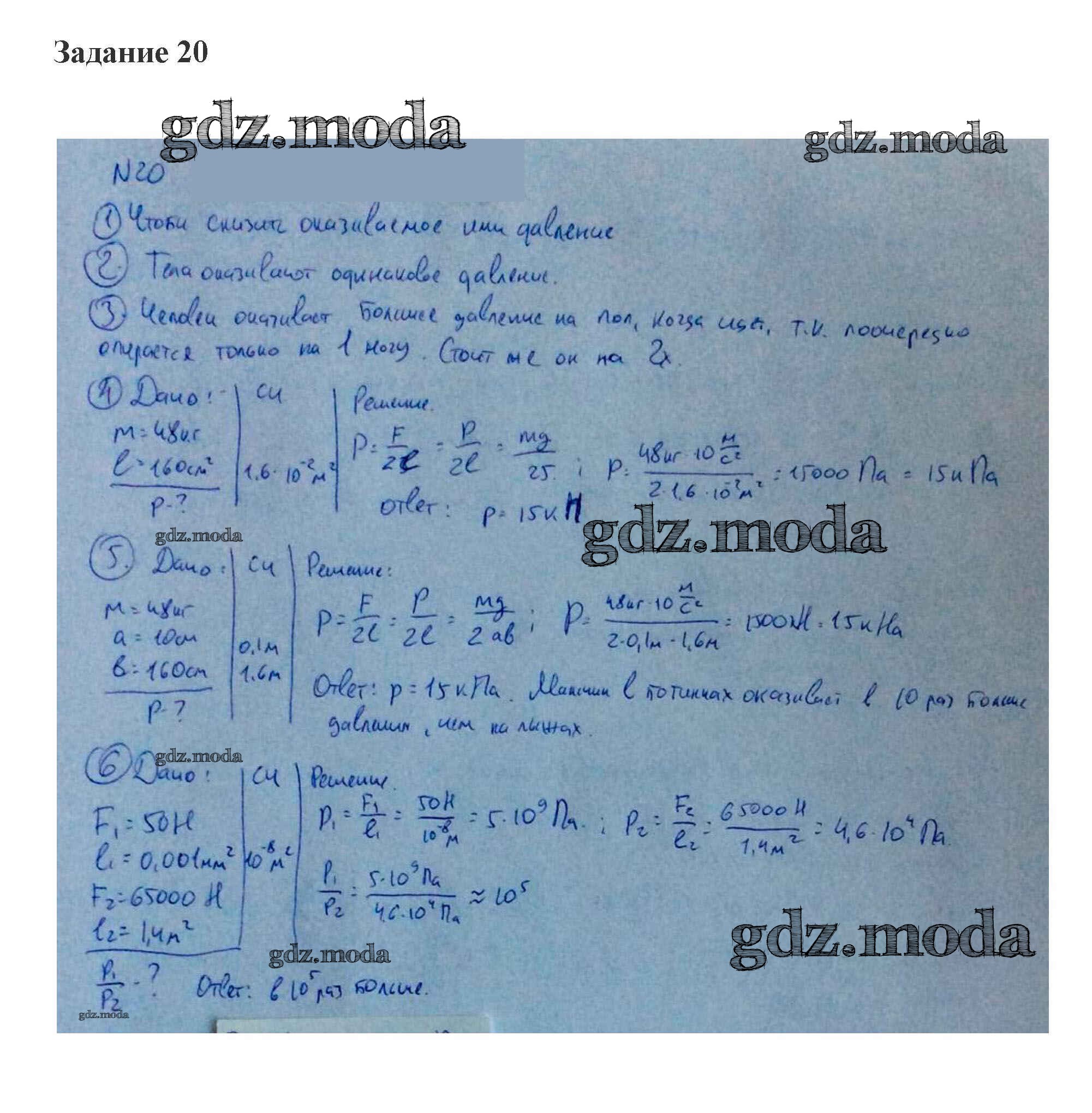 ОТВЕТ на задание № 20 Учебник по Физике 7 класс Пурышева