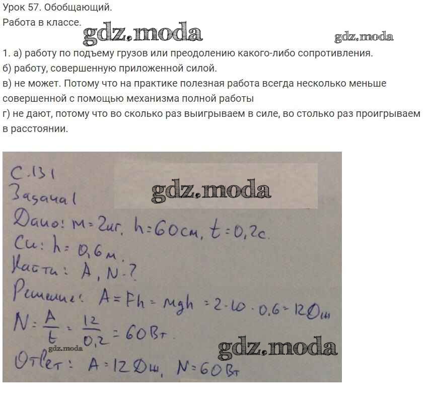 ОТВЕТ на задание № 57 Рабочая тетрадь по Физике 7 класс Минькова УМК