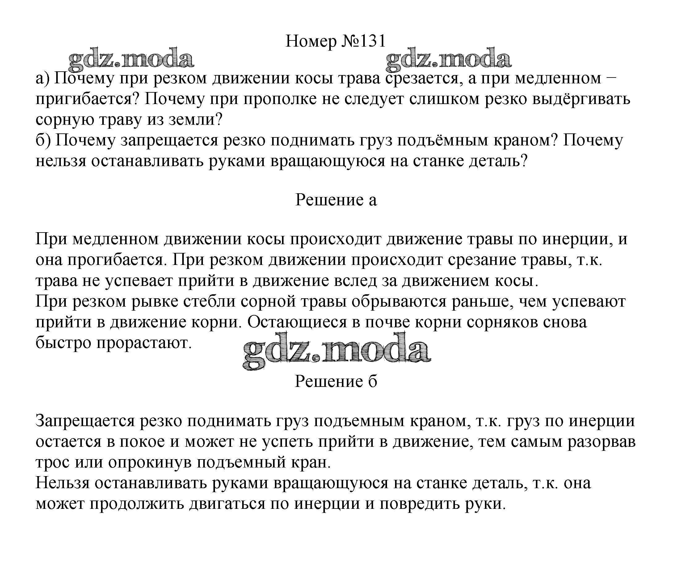 ГДЗ решение к заданию № 131 Физика 7-9 классы сборник вопросов и задач Марон А.Е. Дрофа 2013 ФГОС бесплатно на гдз.мода!