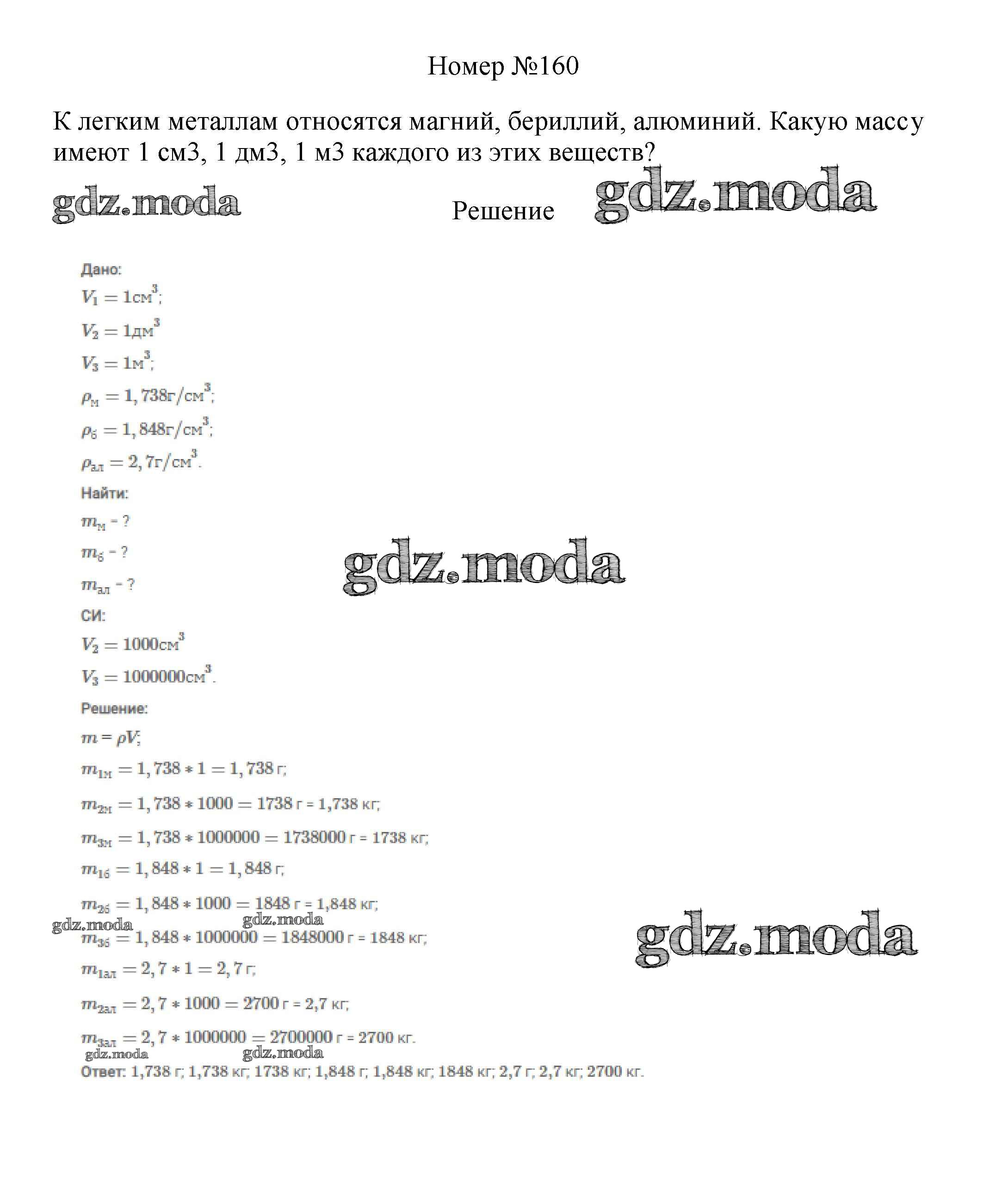ОТВЕТ на задание № 160 Сборник вопросов и задач по Физике 7-9 класс Марон Вертикаль