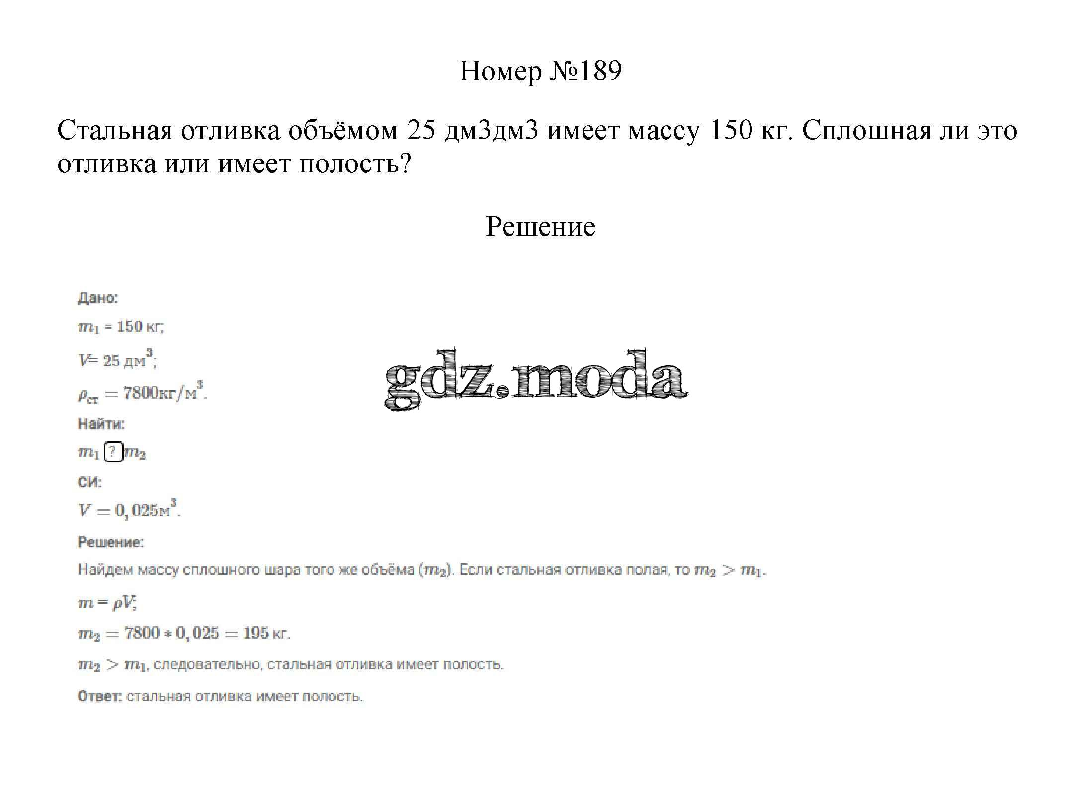 ГДЗ решение к заданию № 189 Физика 7-9 классы сборник вопросов и задач Марон А.Е. Дрофа 2013 ФГОС бесплатно на гдз.мода!
