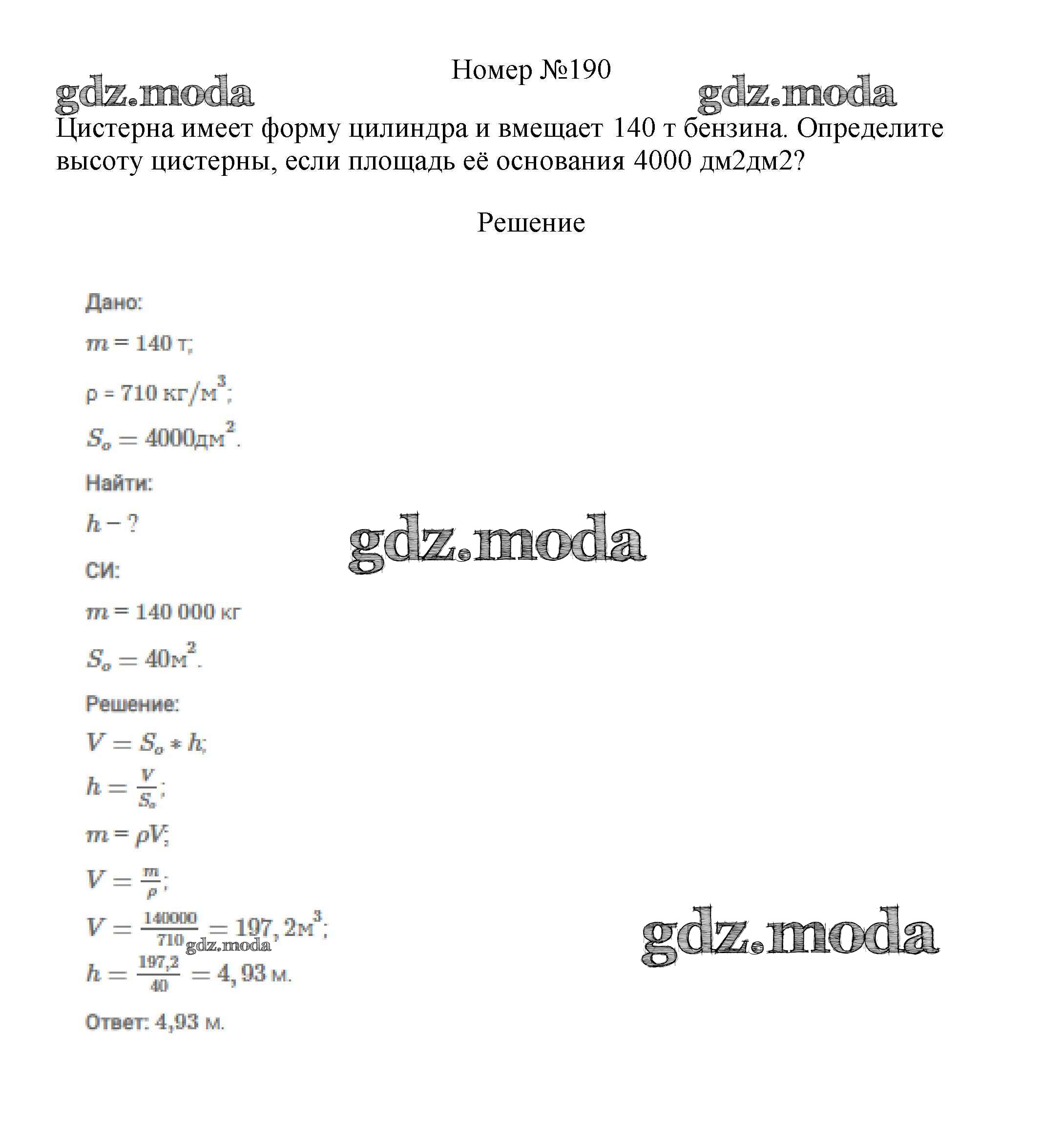 ОТВЕТ на задание № 190 Сборник вопросов и задач по Физике 7-9 класс Марон Вертикаль