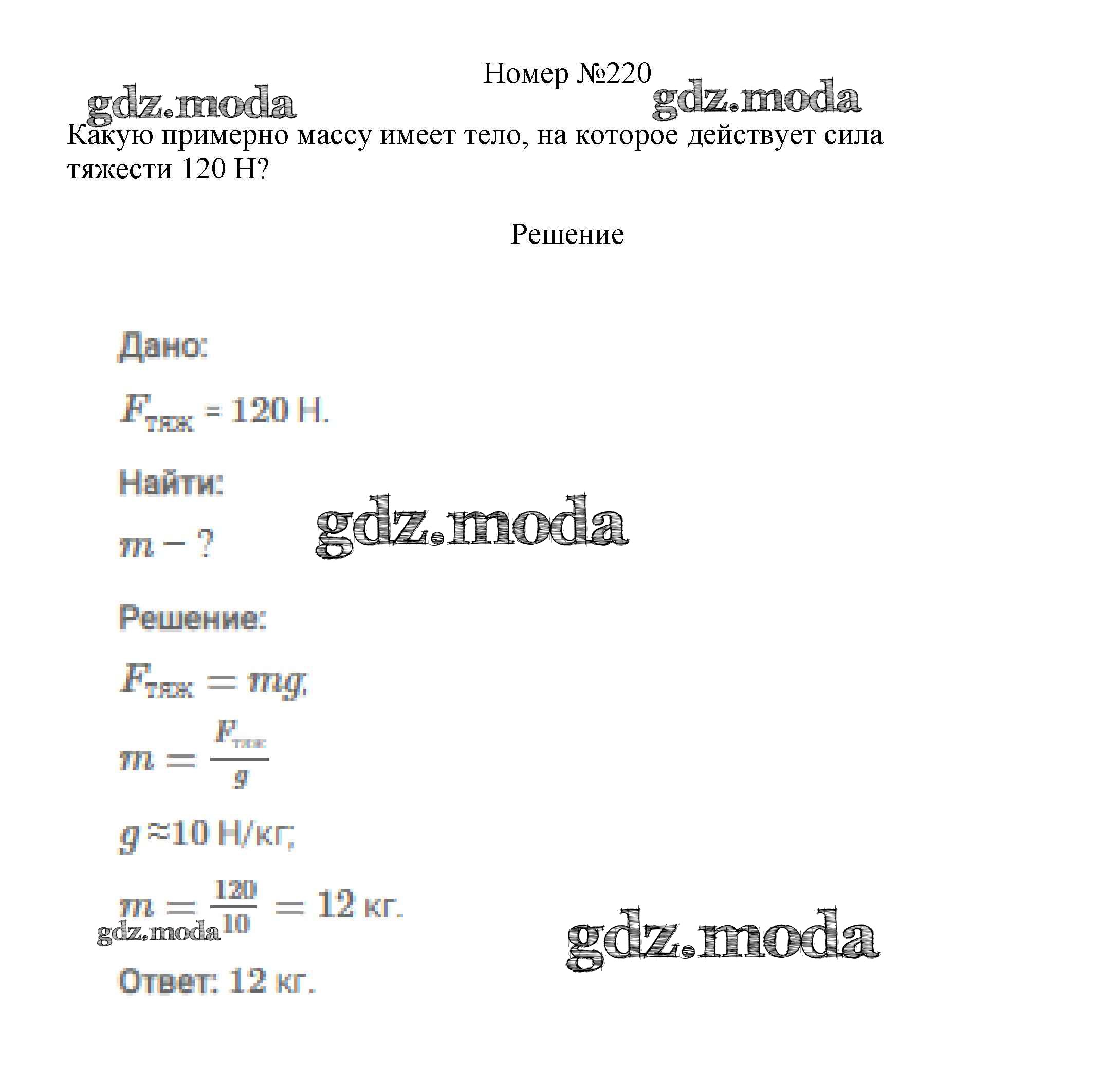 ГДЗ решение к заданию № 220 Физика 7-9 классы сборник вопросов и задач Марон А.Е. Дрофа 2013 ФГОС бесплатно на гдз.мода!
